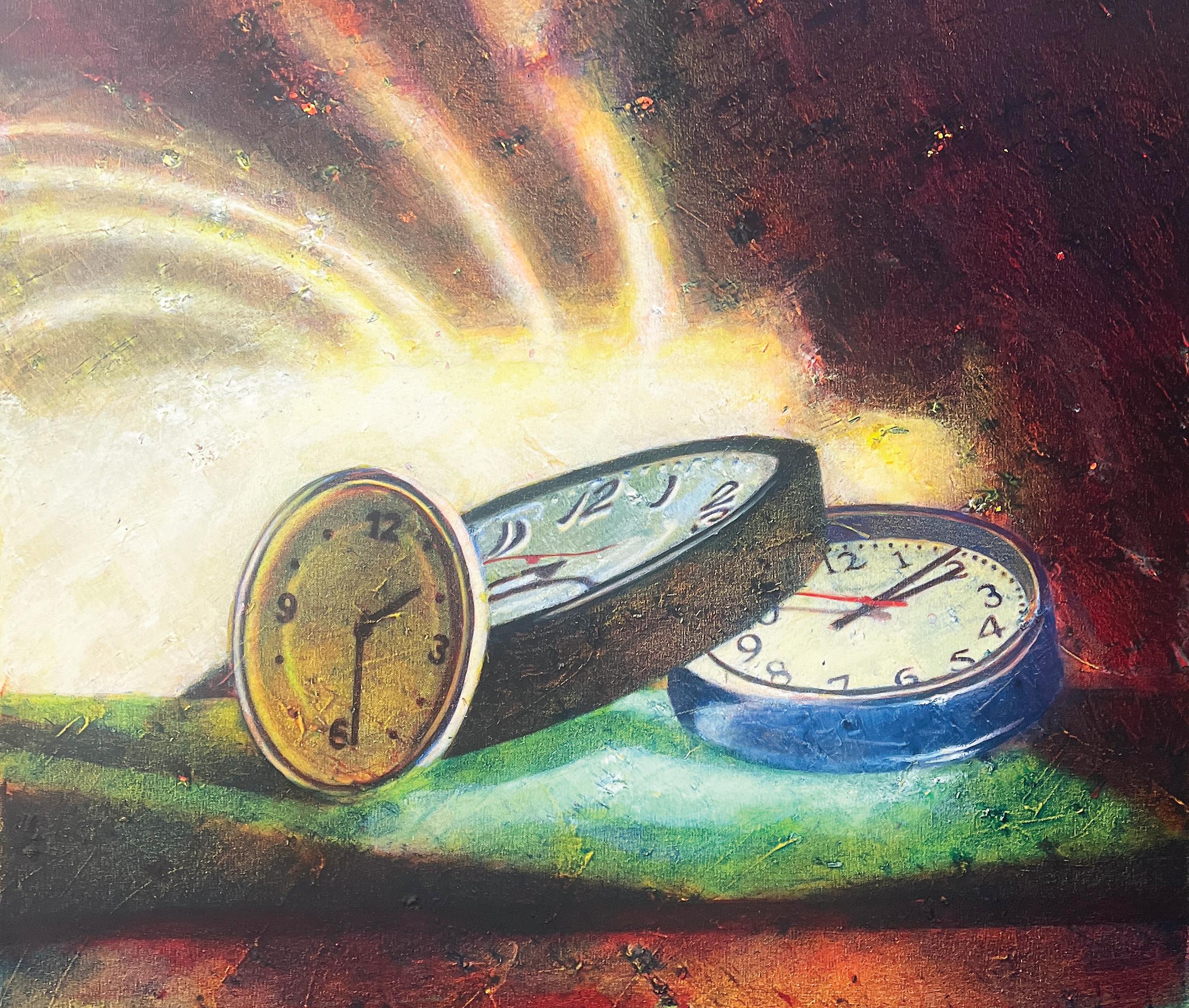 Chris Daubert (1950–2023) was an artist, teacher and curator who exhibited his drawings, paintings and large multi-media installations locally, nationally and internationally. He organized and curated more than 100 exhibitions in nonprofit, college and university art galleries. This work is part of the memorial exhibition “Right Here, Right Now” on display Dec. 6–29 at Twisted Track Gallery at 1730 12th St. Shown: “Clockrest,” oil on canvas, 46 inches by 32 inches. Visit twistedtrackgallery.life or contact Nisa Hayden at (916) 769-2700.
