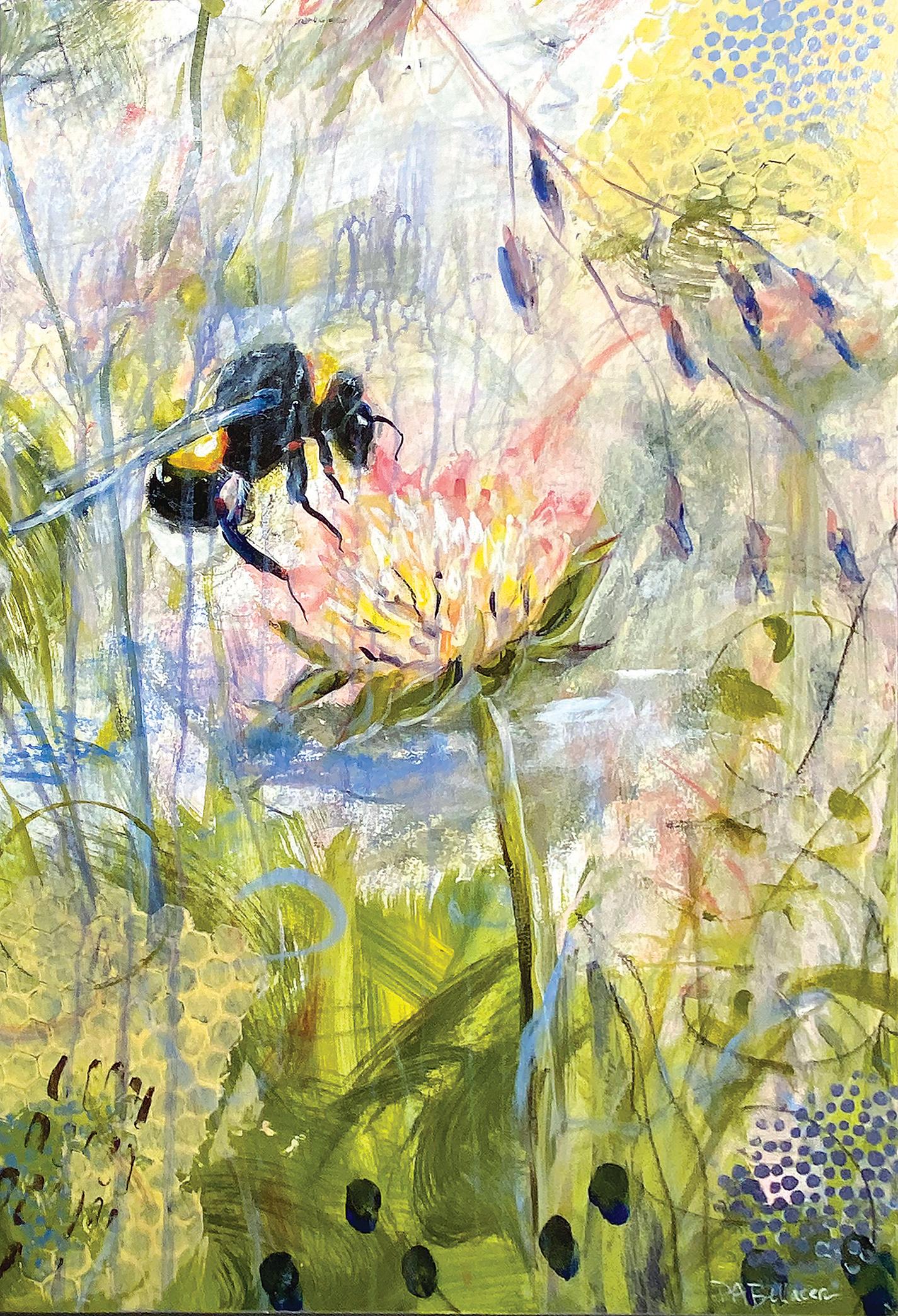 “Bee in the Mist” by Paula Bellacera at Twisted Track Gallery.