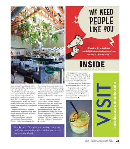 Greg Sabin can be reached at gregsabin@hotmail.com. Previous reviews can be found and shared at InsideSacramento.com. Follow us on Facebook, Twitter and Instagram: @ insidesacramento. n