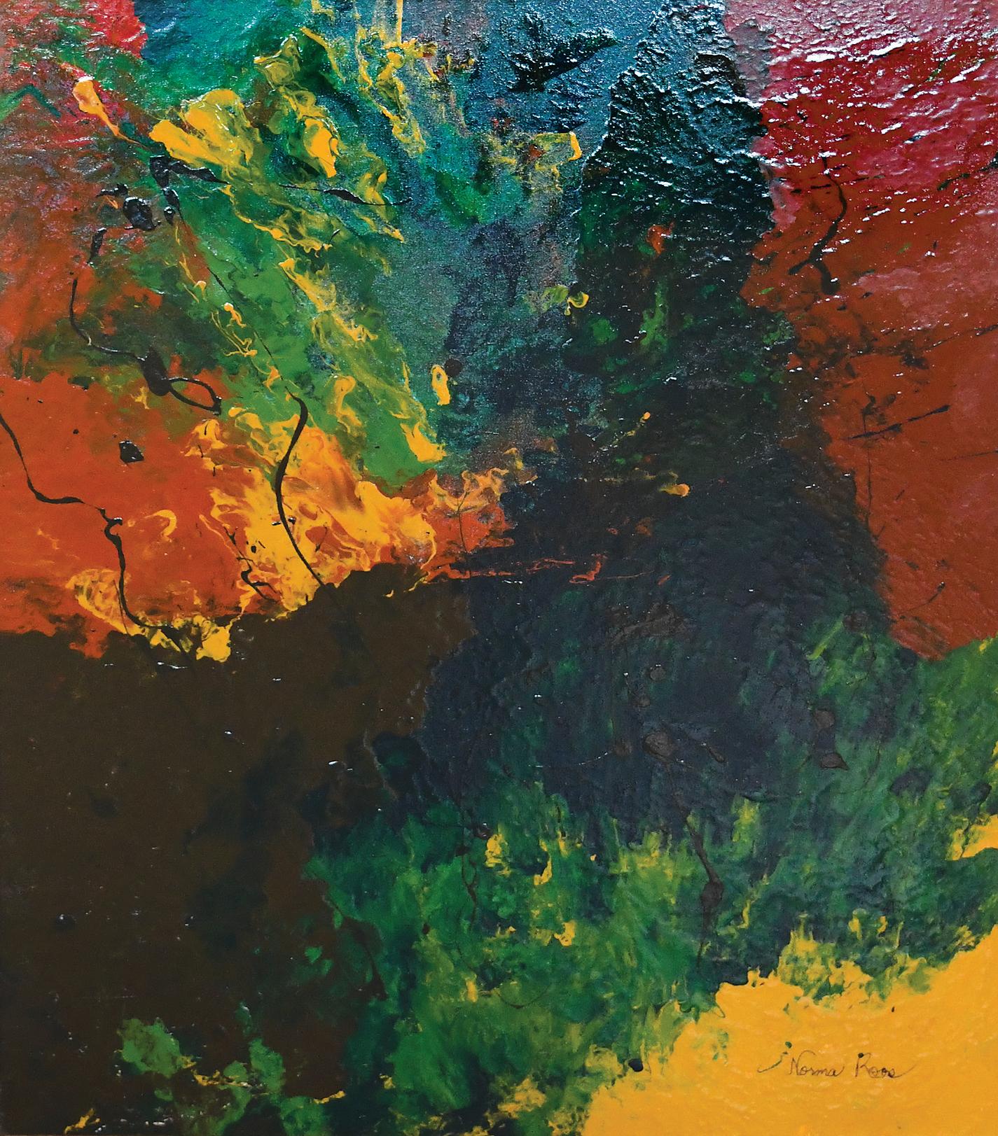 “As I gaze at two of my Norma Roos paintings in my living room, I see something different every time I spend time with them,” Sobon says. “The passion, emotion and skill that she has in her abstract work just boggles my mind.”
