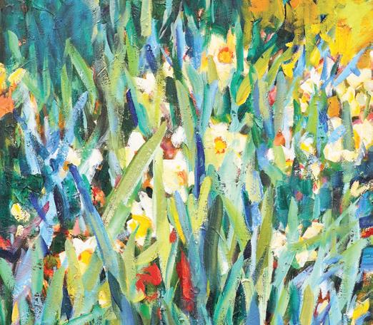 Pat Mahony, a fixture in the California art scene, is featured in the annual PBS KVIE Art Auction. Her paintings of urban scenes, river landscapes, still life and more are filled with saturated tones and lush abstraction that create a harmonious balance between dark and light. Shown: “Daffodil Memories,” oil on canvas, 24 inches by 24 inches. Visit mahonyart.com.