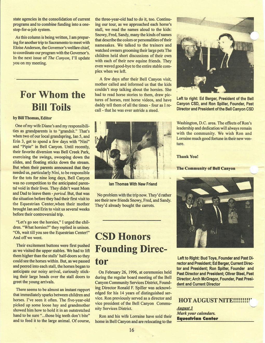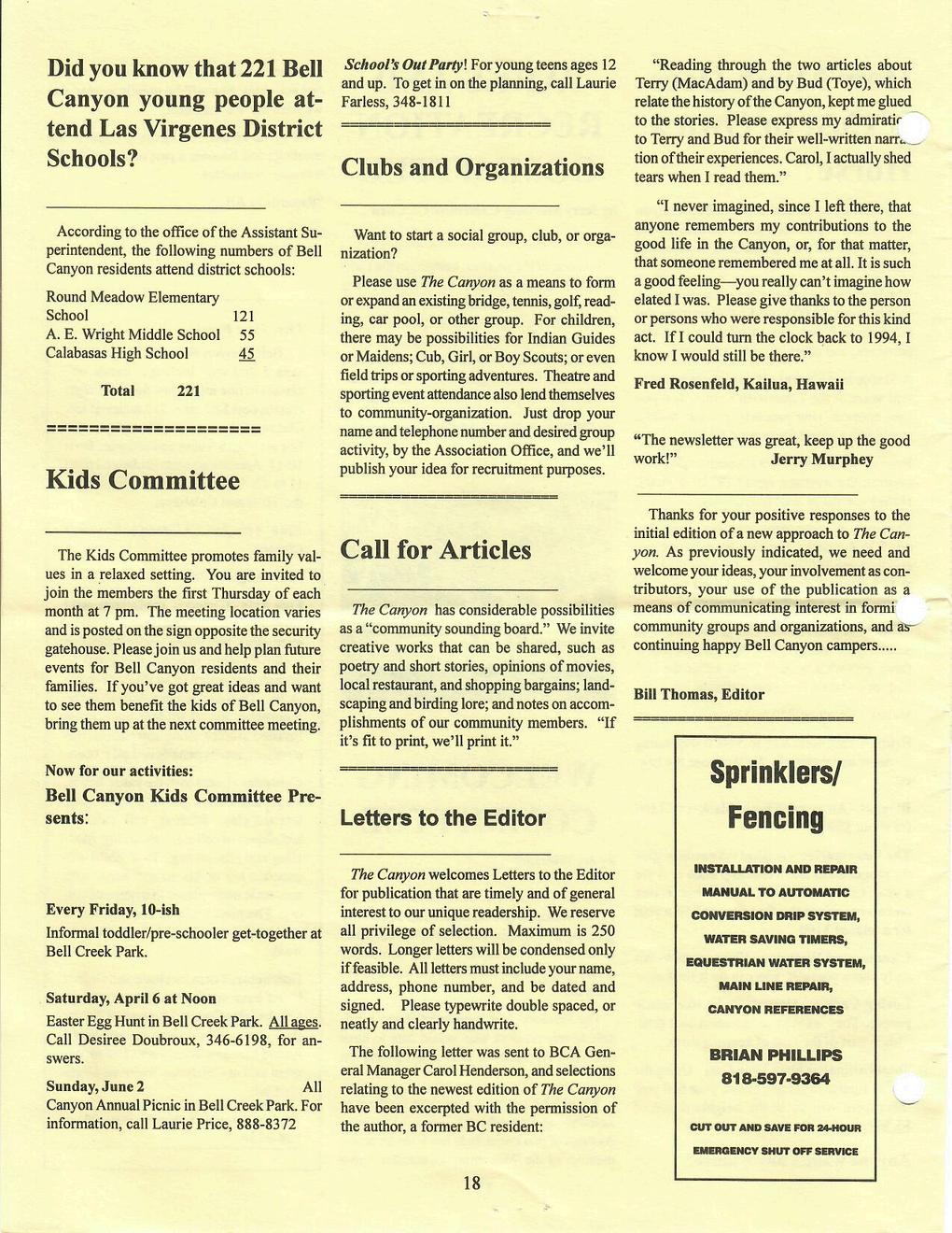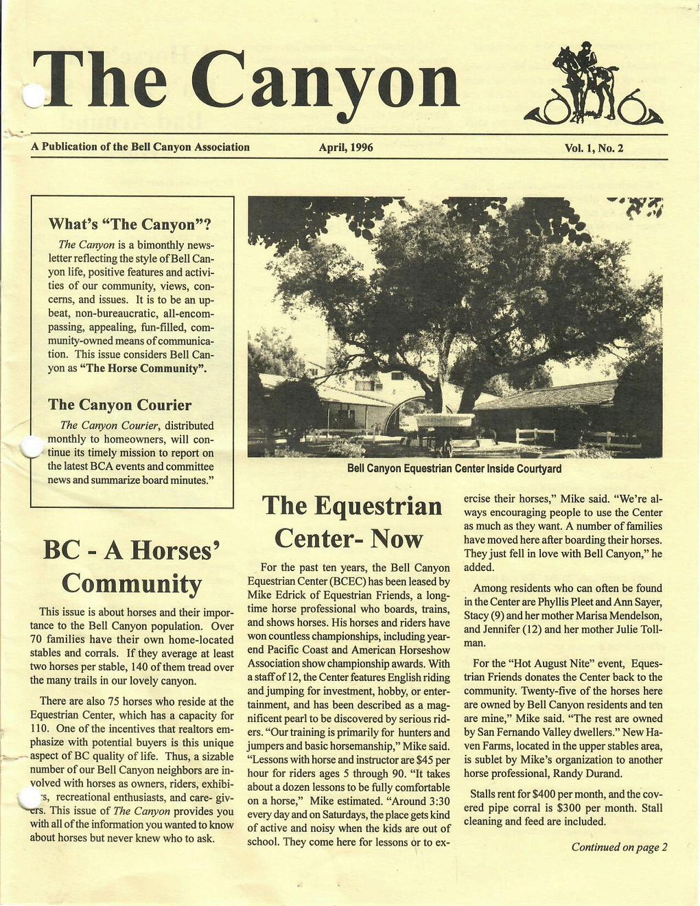 For our second flashback, we’re turning the pages back to April 1996, when a new neighborhood publication, The Canyon, made its debut a few months before. We've reproduced Vol 1, No. 2 here for you to enjoy a glimpse into Bell Canyon nearly 30 years ago.