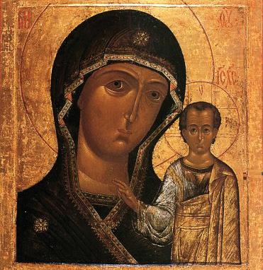 Mary is not only the mother of Jesus, but of the entire Church – all those who believe in her Son. Mary (pictured here in a hodegetria icon, in which Mary points to Jesus as the Savior of mankind) leads all souls toward her Son, “the Light of the World.” Turning toward the One Light, the world can find everything it seeks.