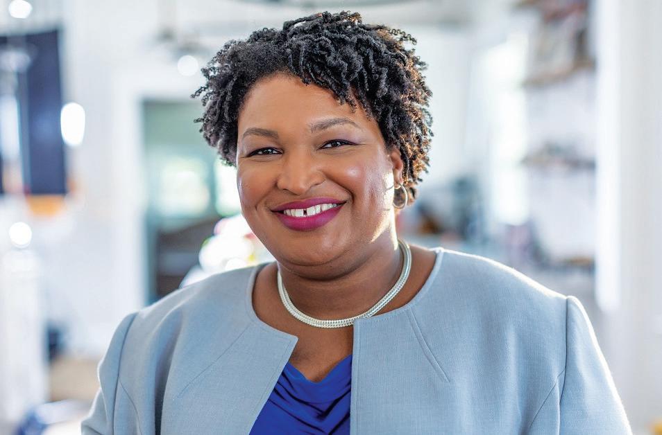 between Abrams and Bishop Francine A. Brookins, 141st Bishop of the African Methodist Episcopal Church and Presiding Prelate of the Southern California Conference. Abrams underscored