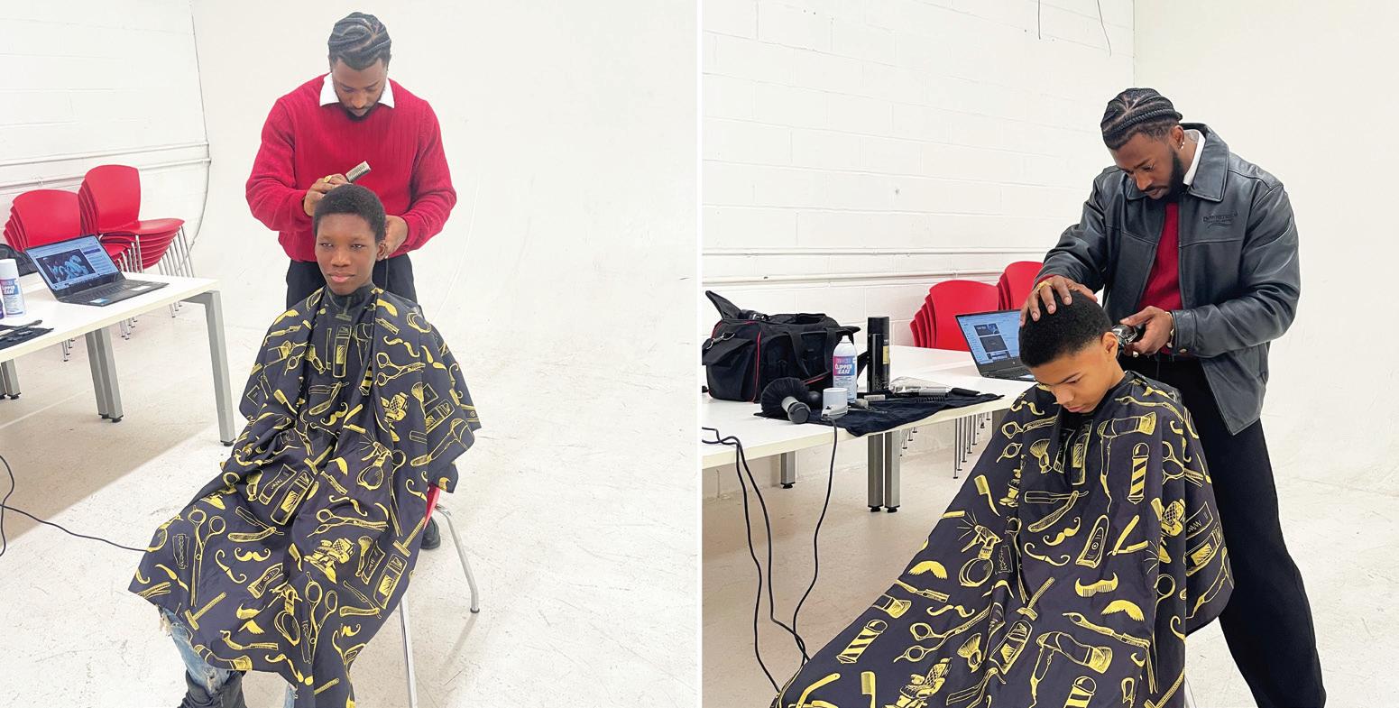 organic ways we bond with them. Sitting in the chair creates conversation. It creates comfort. It creates trust. Some of the best talks we’ve had with our young men happen while the clippers are on. They open up about school, family, pressure, insecurities, and goals. In that moment, they are relaxed, they feel cared for, and they know they matter. That is the culture we work hard to build. A haircut does something powerful. When a young man looks in the mirror and sees himself clean, sharp, and put together, his confidence rises. His posture changes. His energy changes. He walks a little taller. That confidence doesn’t