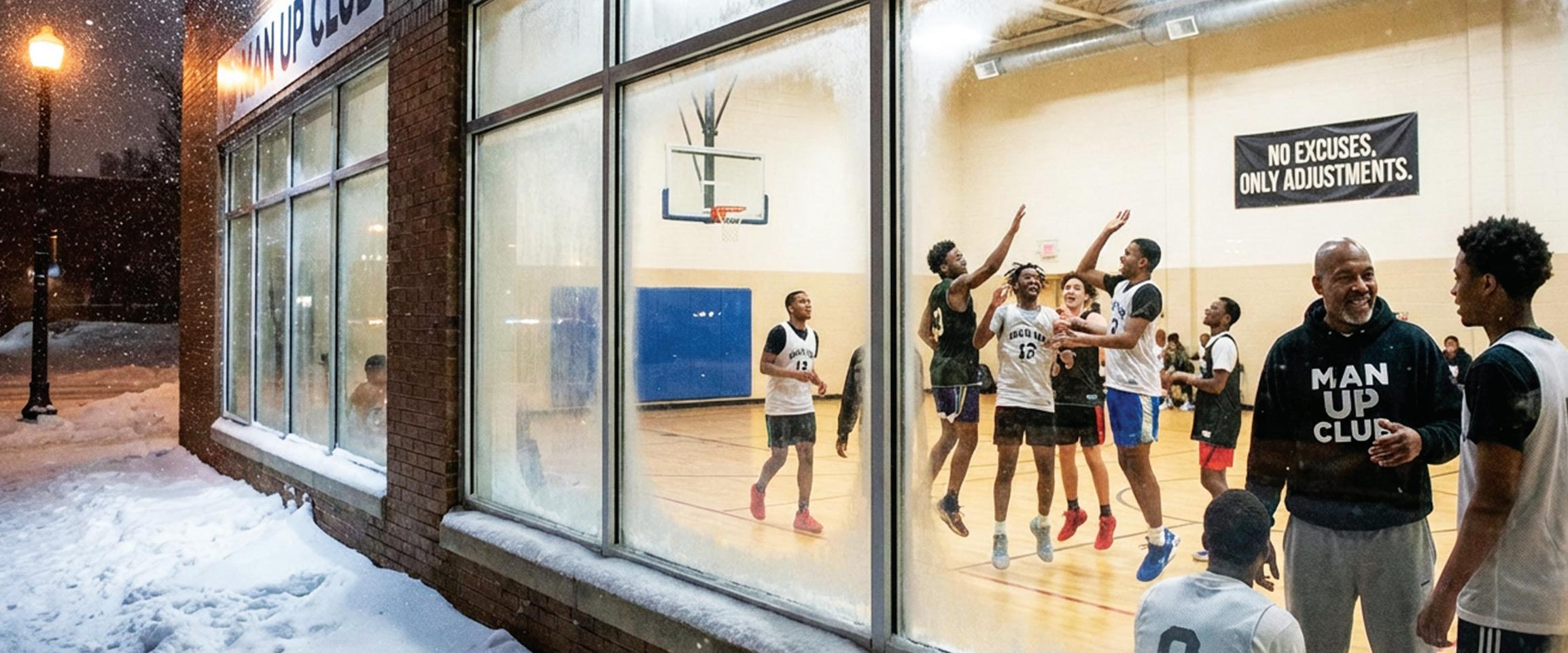 At the Man Up Club, our role isn’t just to run programs — it’s to model the habits and mindsets we want our young men to carry into adulthood. Staying active during a Minnesota winter is a powerful metaphor for life: when things get cold, uncomfortable, or inconvenient, you don’t shut down. You find another way. Bringing the hoops inside is a small action with a big message. Health matters. Movement matters. And no matter the season, we will continue creating opportunities for our young men to grow stron-