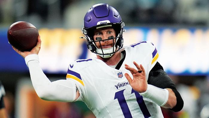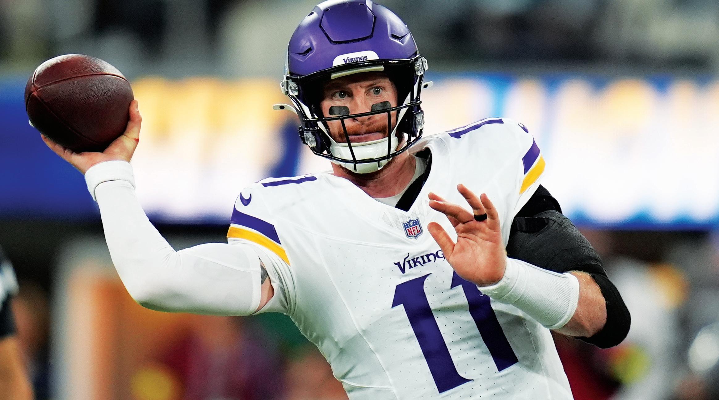 Carson Wentz started on short rest in place of quarterback J.J. McCarthy, who missed his fifth straight game with an ankle injury. Wentz was 15 of 27 for 144 yards with one touchdown and an interception while getting sacked five times. He played through a left shoulder injury that he aggravated multiple times. "Hats off to their defense on a short week," Wentz said. "Scheme-wise, they have some good players. We were banged up up front. I thought guys competed their tails off. I could always get the ball out quicker and make some plays and make decisions faster, but