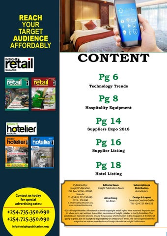 ©2018 Insight Hotelier. All material is strictly copyright andall rights were reserved. Reproduction in whole or in part without the written permission of Insight Hotelier is strictly forbidden. The greatest care has been taken to ensure the accuracy of information in this magazine at the time of going to press, but we accept no responsibility for omissions or errors.The views expressed in the magazine are not necessarily those of Insight Hotelier or Insight Publications.