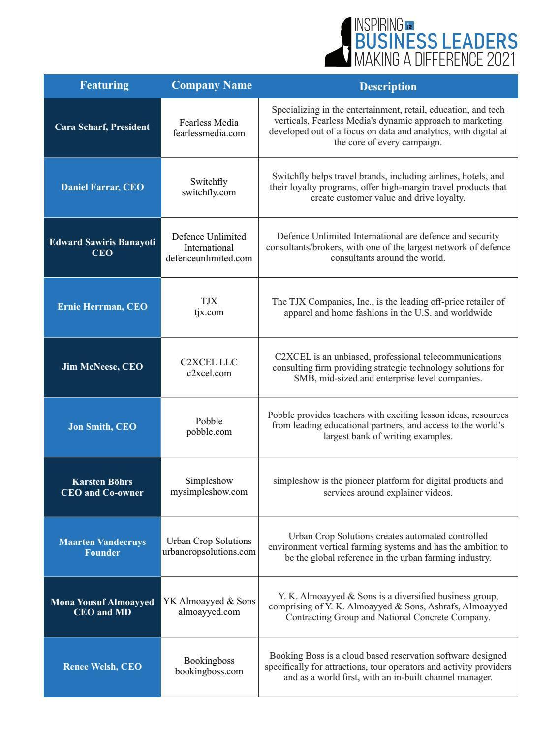 Inspiring Business Leaders Making a Difference 2021 March2021