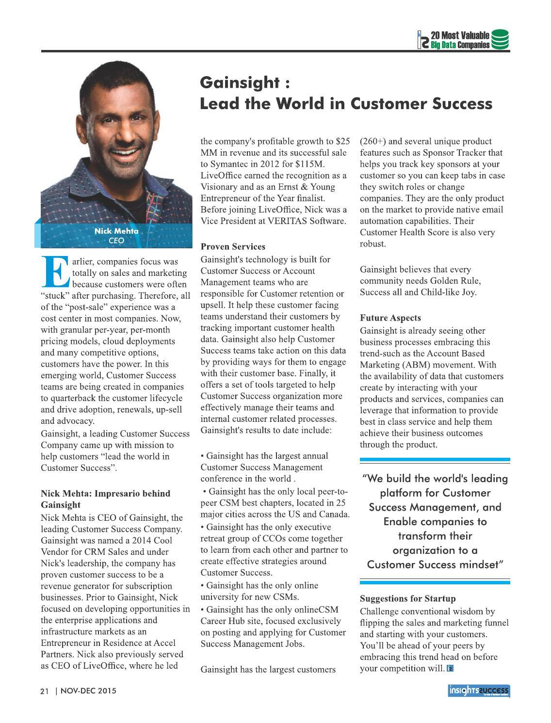 IS 20 Most Valuable Enterprise Big Data Companies listing for the month of Nov-Dec 2015