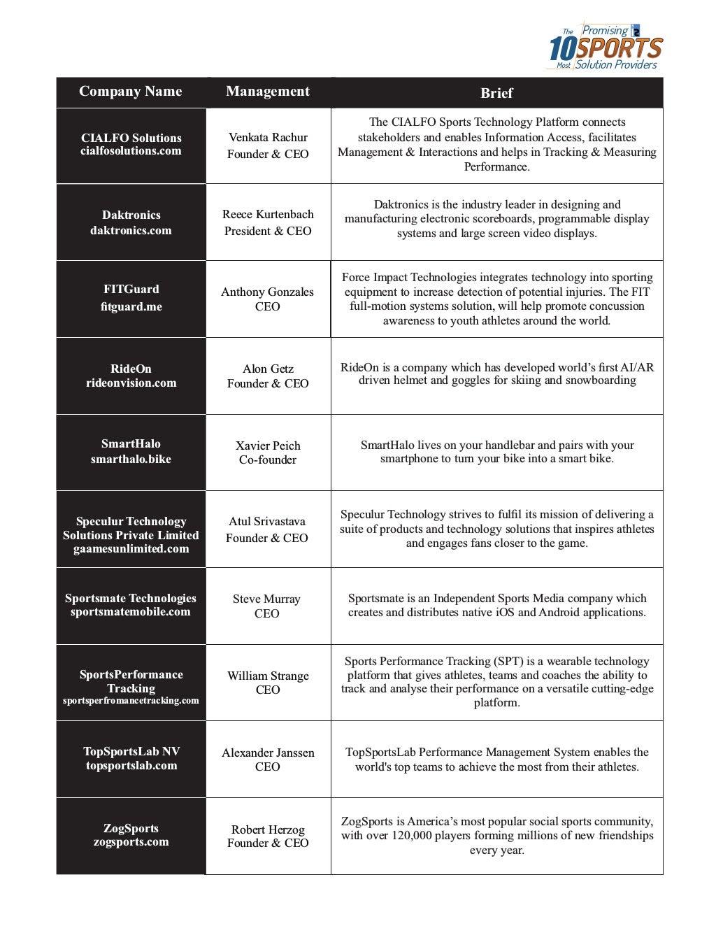 The 10 Most Promising Sports Solution Providers 2018 April2018