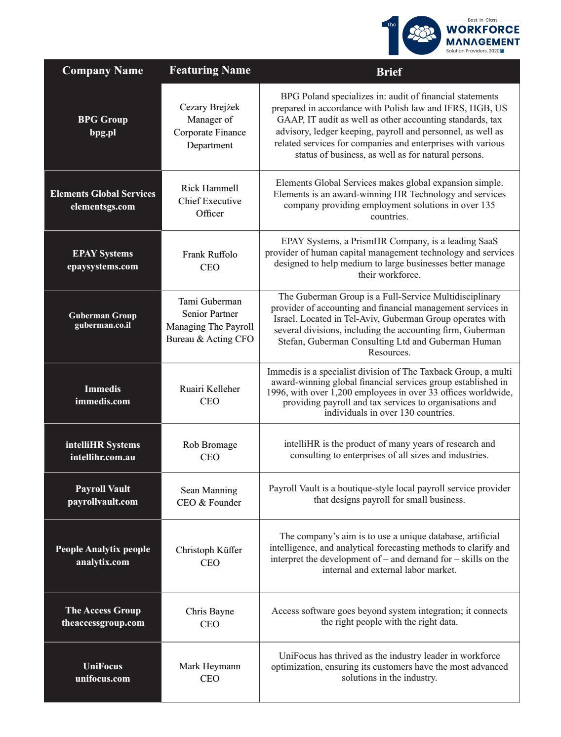 The 10 Best-in-Class Workforce Management Solution Providers, 2020 December2020