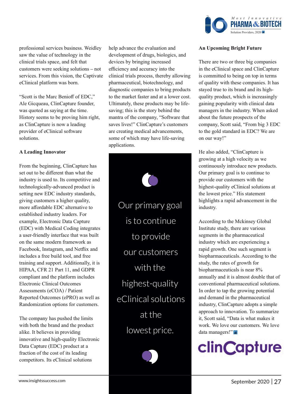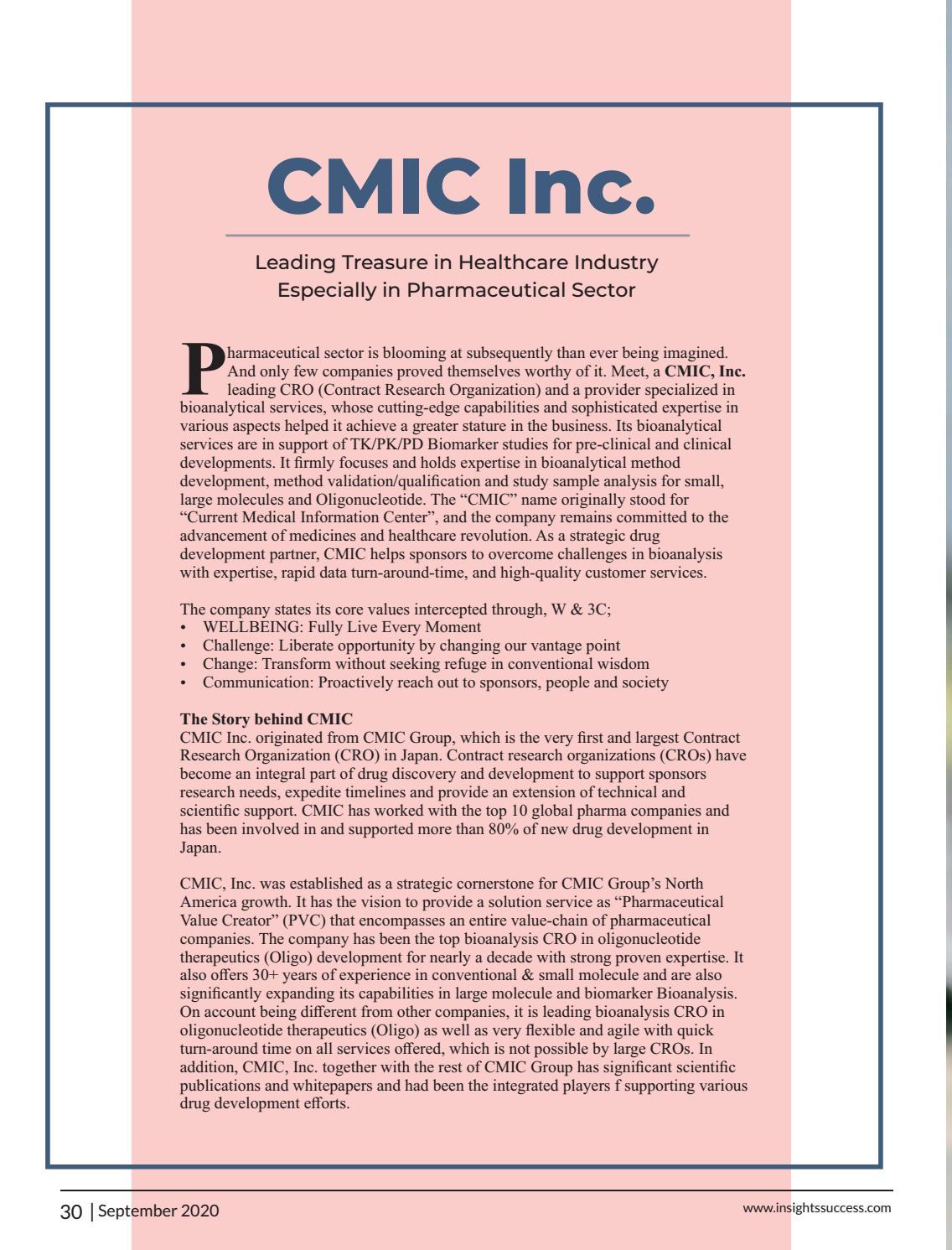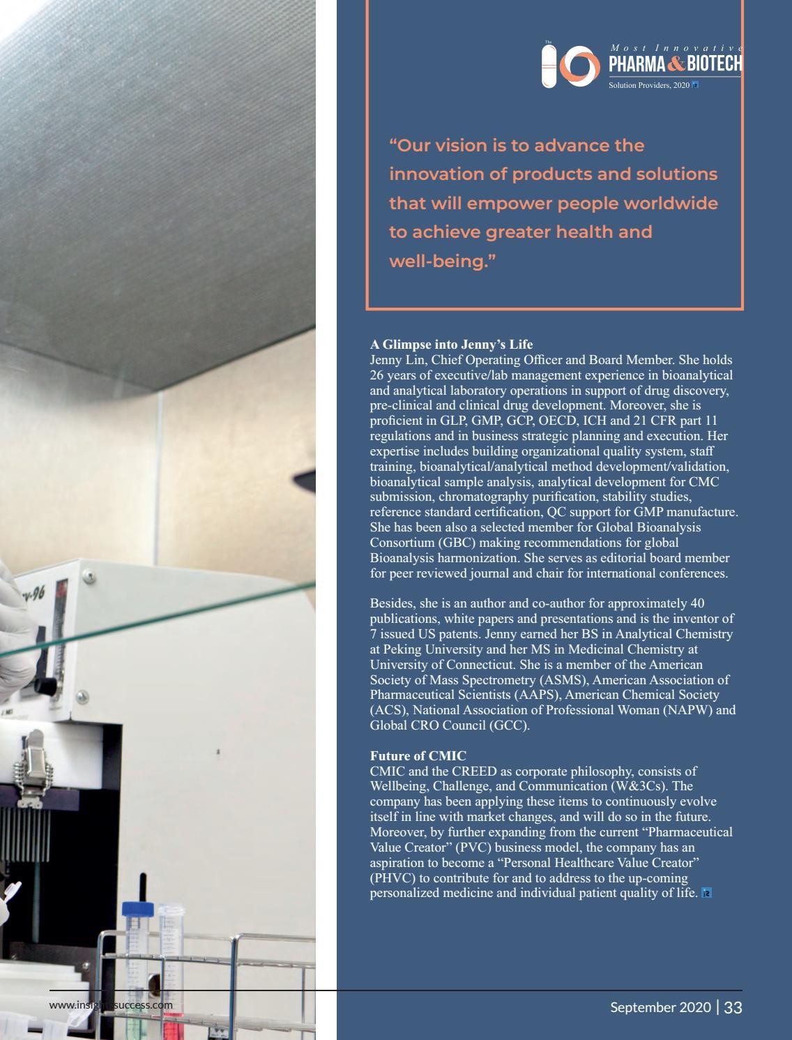The 10 Most Innovative Pharma and Biotech Solution Providers, 2020 September2020 by Insights Success Media - Issuu