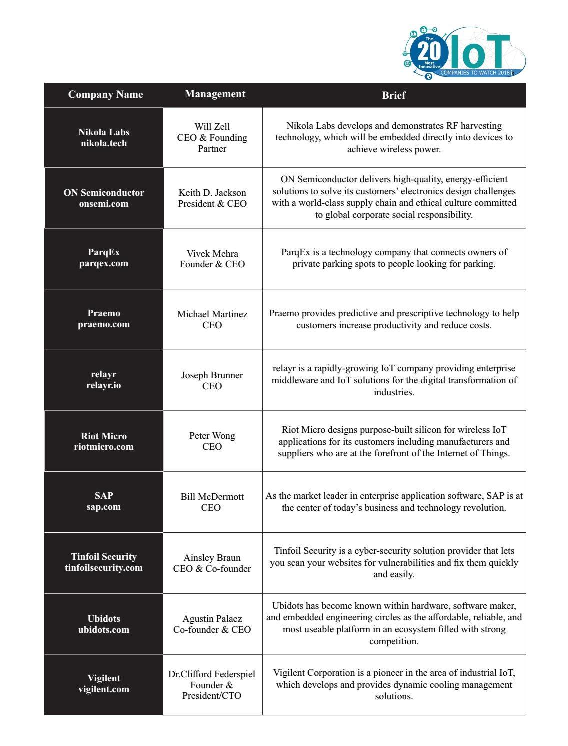 The 20 Most Innovative IoT Companies to Watch 2018 April2018