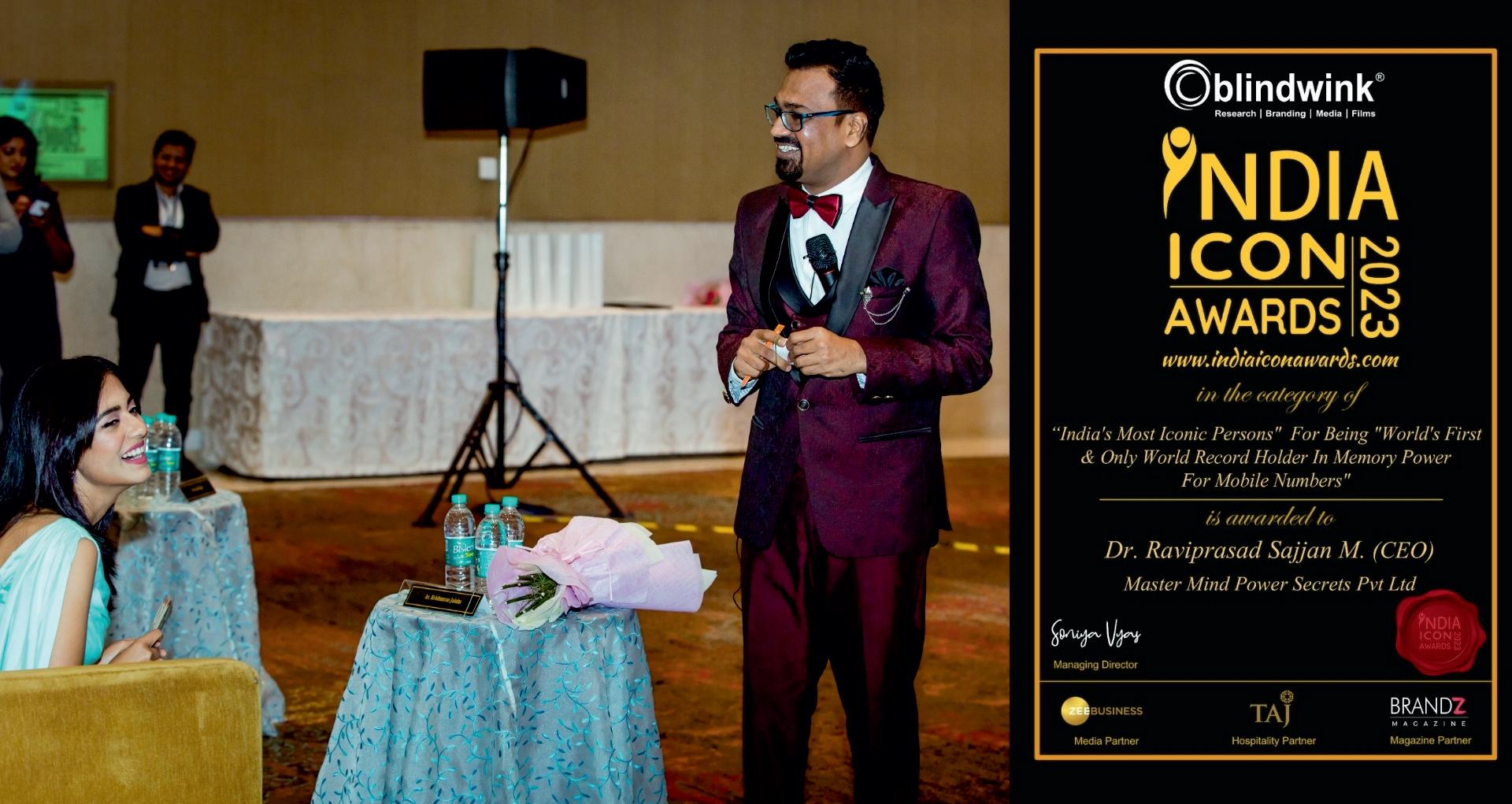 Dr.RaviprasadSajjan'sextraordinarycontributionsreceived thehighhonortheydeserved.Hewascelebratedatthe prestigiousIndiaIconAwardsinBengaluru,Karnataka State.Thisinternationalawardceremony,organizedby BlindwinkEntertainment,recognizedindividualsfortheir exceptionalachievementsacrossvariousfields.