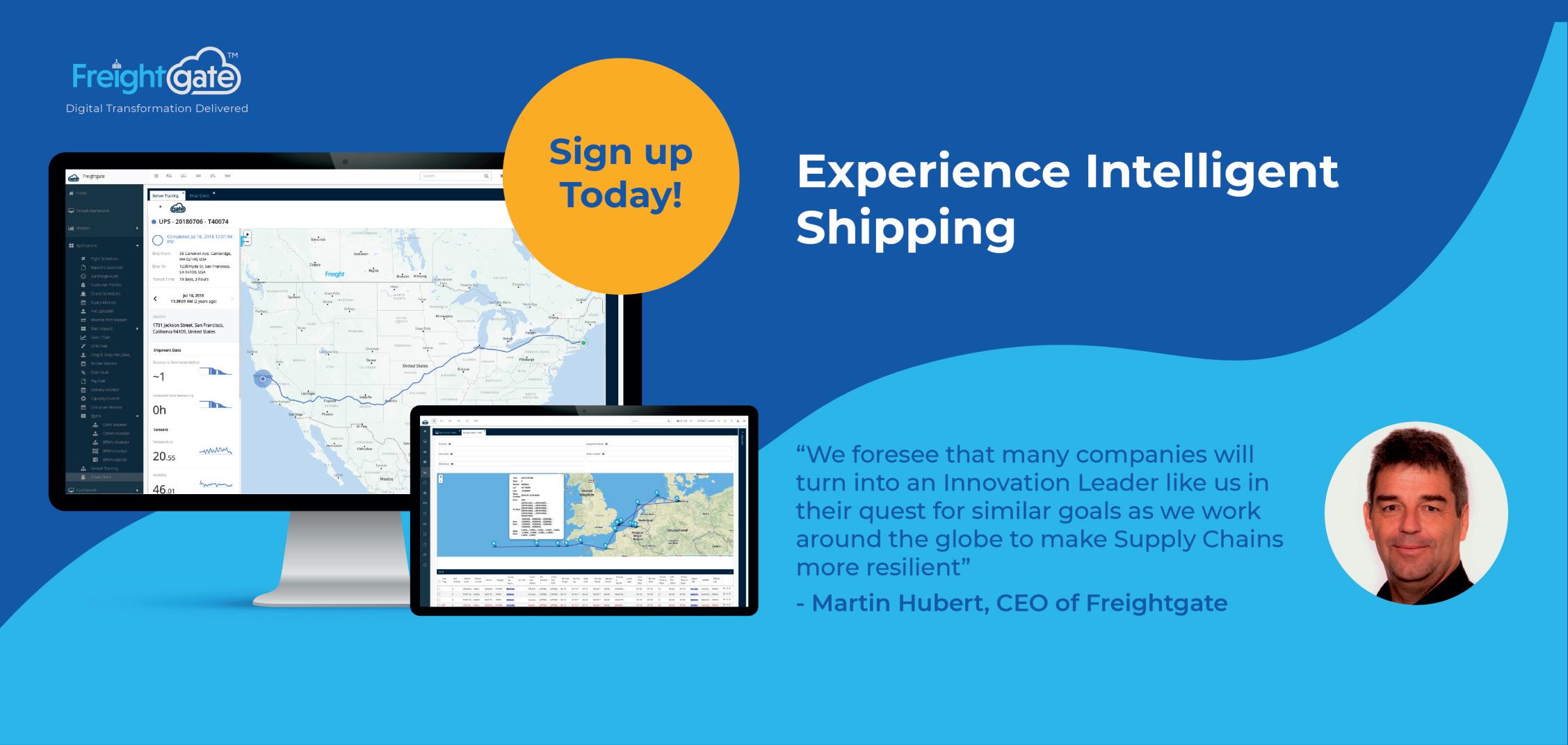 AspartofitsSuccessbyDesignMethodology,the companyleveragestheflexibilityoftheFreightGate LogisticsCloudplatformtotailortheperfectfitsolutions foritscustomers. “We are constantly improving our cloud with advanced AI and ML capabilities, enabling new options that make them more agile and empower them to reduce risk, safe money, and make better decisions faster,” saysMartinHubert,CEOand FounderofFreightgate.