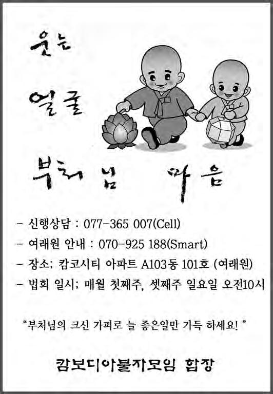 문의안내: 017 323 700(한국어), 096 344 2629(English, Khmer)