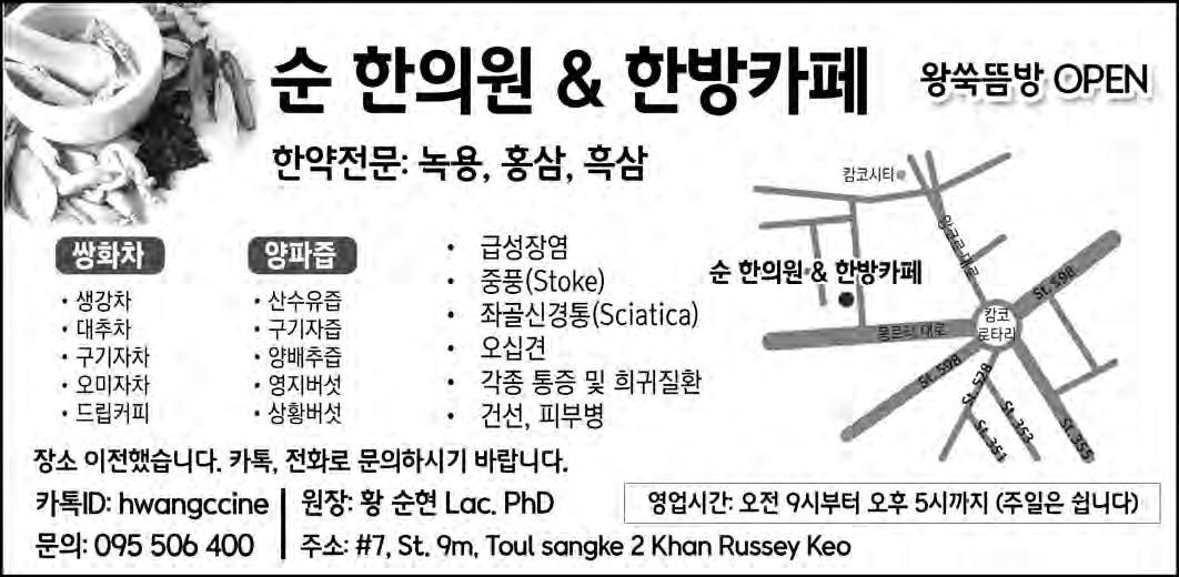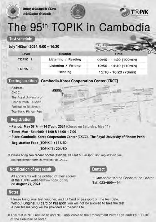 문의안내: 017 323 700(한국어), 096 344 2629(English, Khmer)