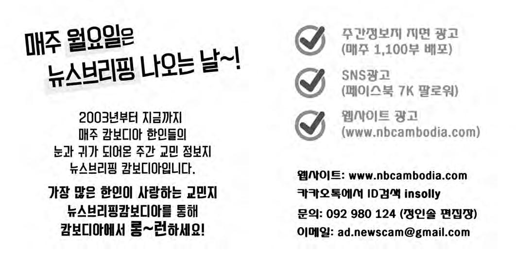 Weekly Korean Newspaper 뉴스브리핑 캄보디아 Tel : 017-888-705 UP TO