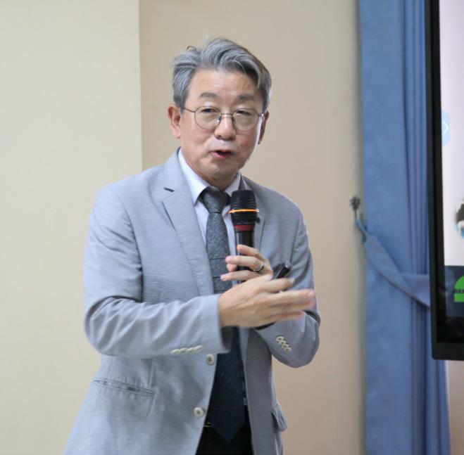 ▲지난 21일 열린 '한캄 농업 포럼'에서 상지대학교 이 명규 교수가 ‘한국의 가축분뇨 관리에서 탄소중립 실현 전 략’을 주제로 한국의 축산분뇨 자원화 사례를 소개했다.