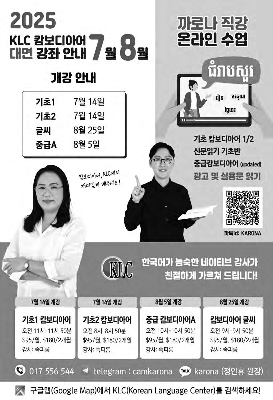 문의안내: 017 323 700(한국어), 096 344 2629(English, Khmer)