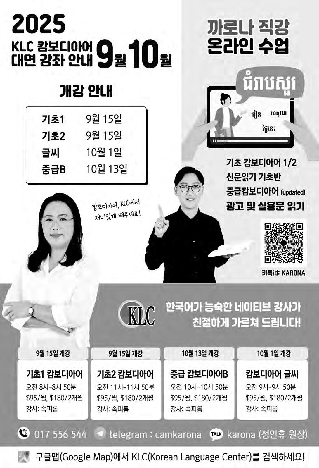 문의안내: 017 323 700(한국어), 096 344 2629(English, Khmer)