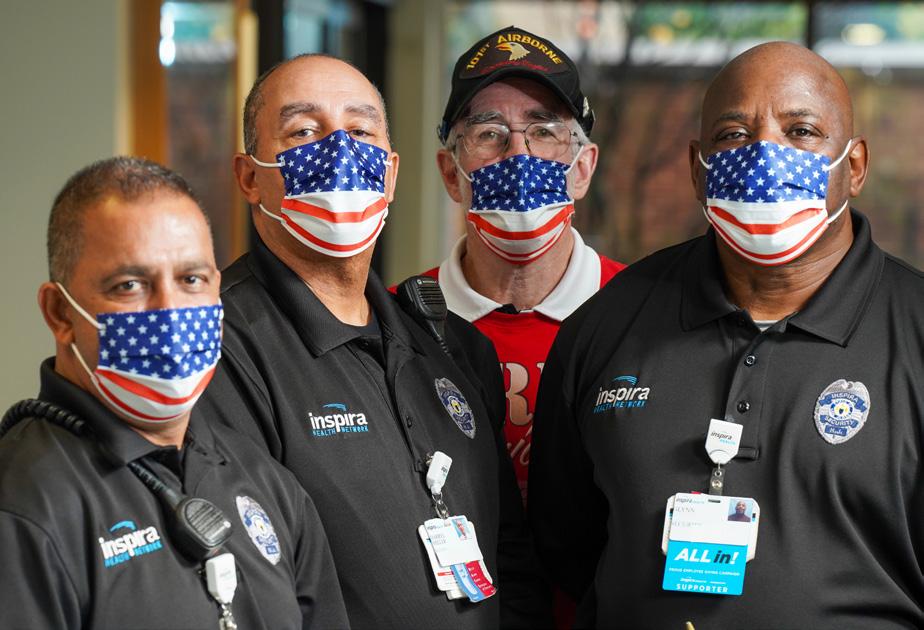 On Friday, November 11, Inspira held flag ceremonies at each campus to honor Veteran’s Day. The program honored those who have served in the United States Armed Forces. Hospitalized patients who are veterans or active military personnel were recognized and given a keepsake flag. Flags were also given to visitors at the front desks and special red, white, and blue masks were distributed. To view photos from all of our Veterans Day ceremonies, click here.