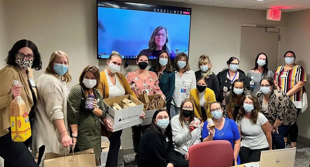 Each year, the leaders in our Population Health department put a goal on all employee evaluations that requires the staff to work with other team members to develop a team building activity. Recently, Kristine Fredericksdorf, social worker, and Sandra Smith, coordinator, organized a team building event for the Population Health department, which included making peanut butter and jelly sandwiches to benefit our local homeless population. The team worked together to make 200 sandwiches which were donated to The Unforgotten Haven, a local nonprofit organization.