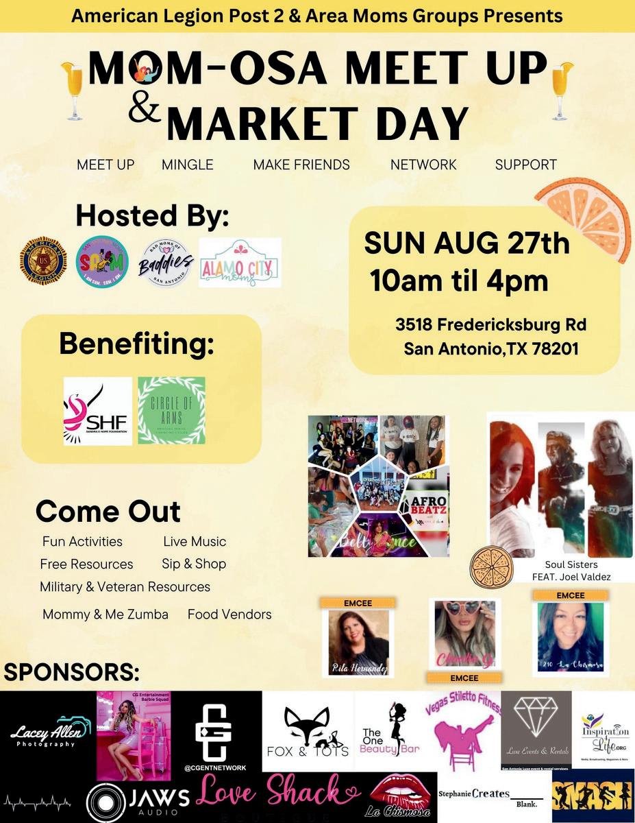 Mom-osa Meet Up and Market Day presented by FB Mom Groups: San Antonio Moms, Bad Moms of San Antonio and Alamo City Moms in collaboration with American Legion Post 2 at 3518 Fredricksburg Rd. They had DJ Moreno and area Influencers and Socialites, Claudia G and local baddie, 210 La Chismosa. Ronique also got Moms hyped with MixxedFit and showcasing the ultra sexy Vegas Stiletto Fitness. Celebrity Radio/TV Host & Personality Rita Hernandez was Emcee of the KIDS/Family area. 9