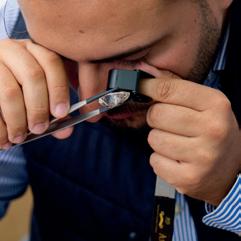 私はロンドンで学んだあと、ニュー ヨークのGIA(米国宝石学会)に 進学しました。こちらは世界最大の ダイヤモンド鑑定機関であり、私はダ イヤモンド鑑定士および宝石学者の 資格を取得しました。さらに、CAD を使った宝飾デザイン技術も習得し、 多くのデザインを自ら考案していま す。それをアントワープを含む各地の 工房で熟練の金細工師たちと共に 宝飾品にしているのです。