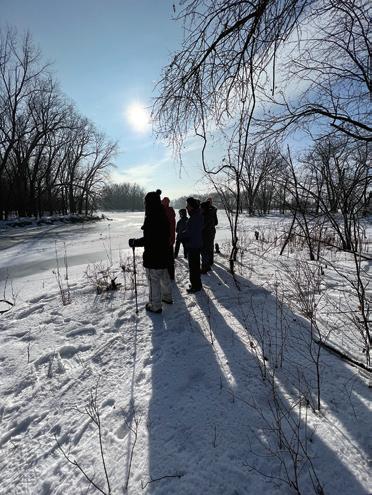 To begin your winter hiking, choose start times in the “heat” of the day. Look for trails that have views of the river, interesting rock formations, nearby bluffs, or deer trails to explore. On a windy day, try coniferous forests or bluffside hikes that take you below the rims to gain protection. If you have a sunny day with little wind, choose a blufftop and enjoy the vistas.
