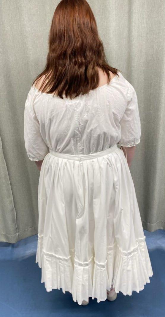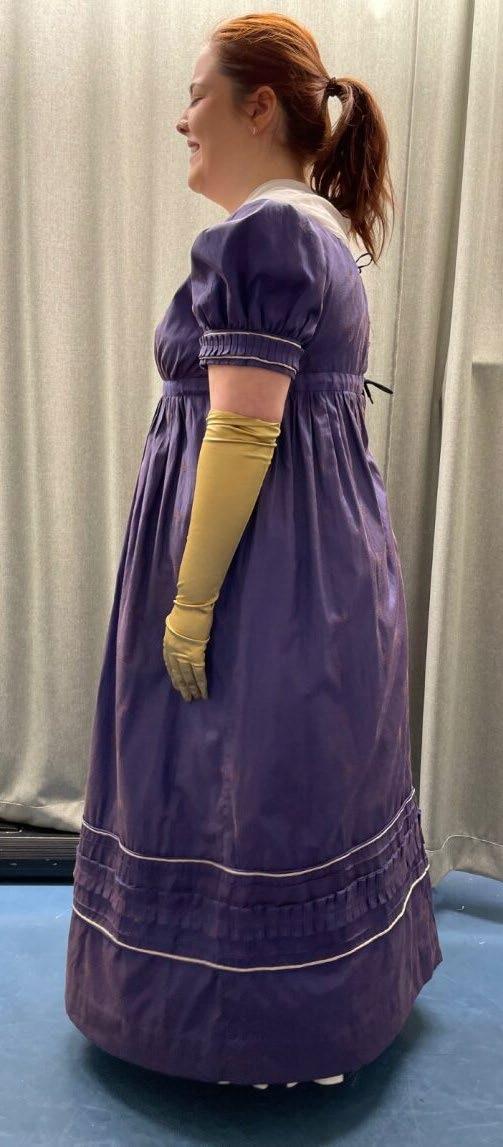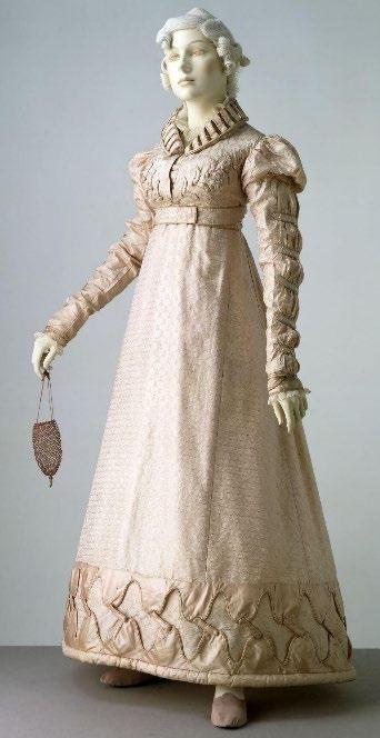 Dresses – After 1825 the waistline dropped to just above the natural waist. The shape of the skirt was straight but after 1825 it gradually became triangular, gathering mainly at the back. Sometimes the front was slightly pointed. The dresses are ankle-length, with the bottom being highly decorative (Waugh, 1968).