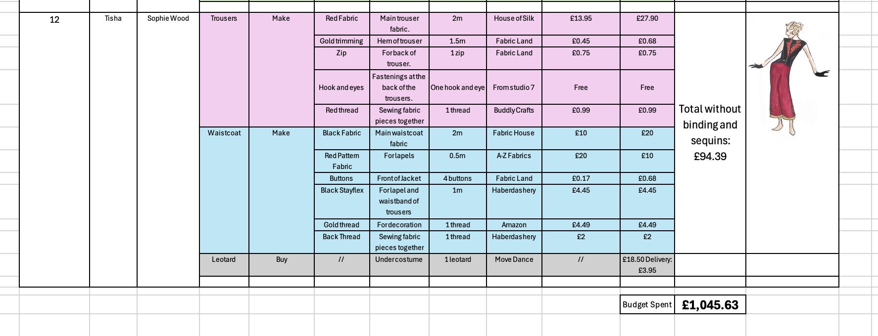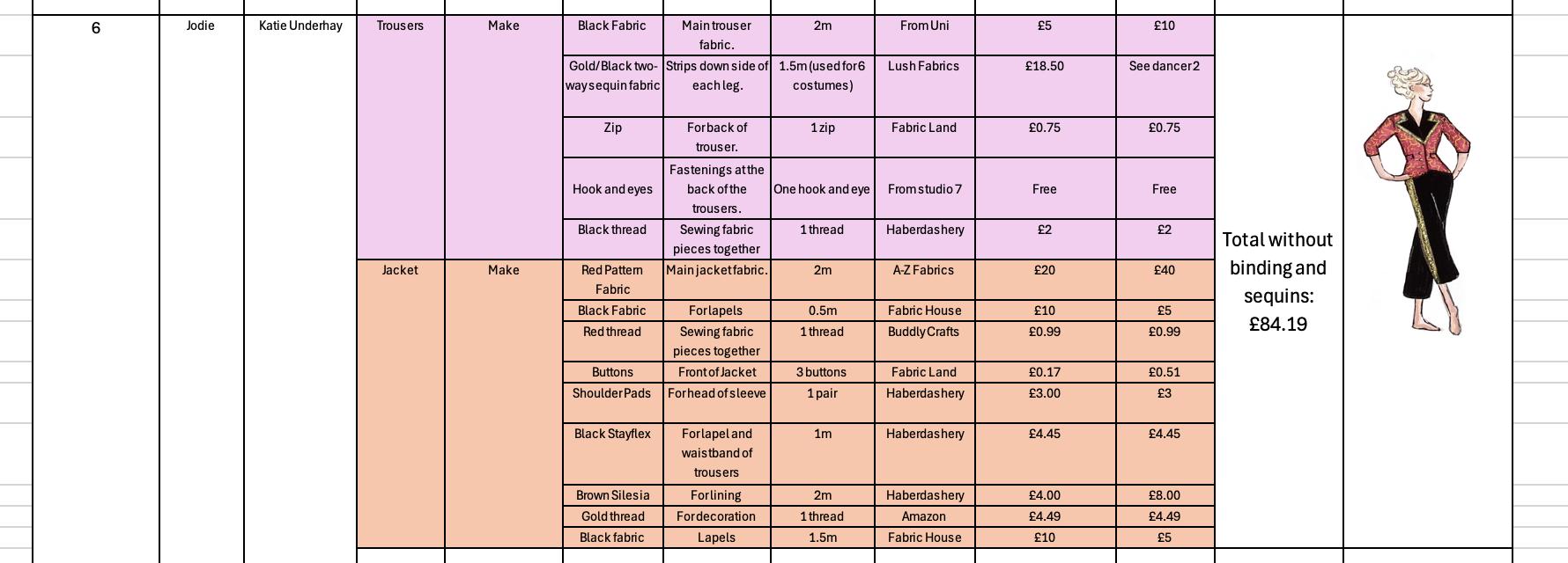 The fabrics from this project weren’t that sustainable. We wanted to find quite sparkly and shiny fabrics for the show which would look good under lights and really standout. Even though most of the fabric might not be that sustainable, the costumes can be used again and will go into the costume store. I thought by researching about different fabrics, what fabrics are and aren’t sustainable, would mean I’d have good knowledge for the future. I do know that fabric can’t be 100% sustainable.