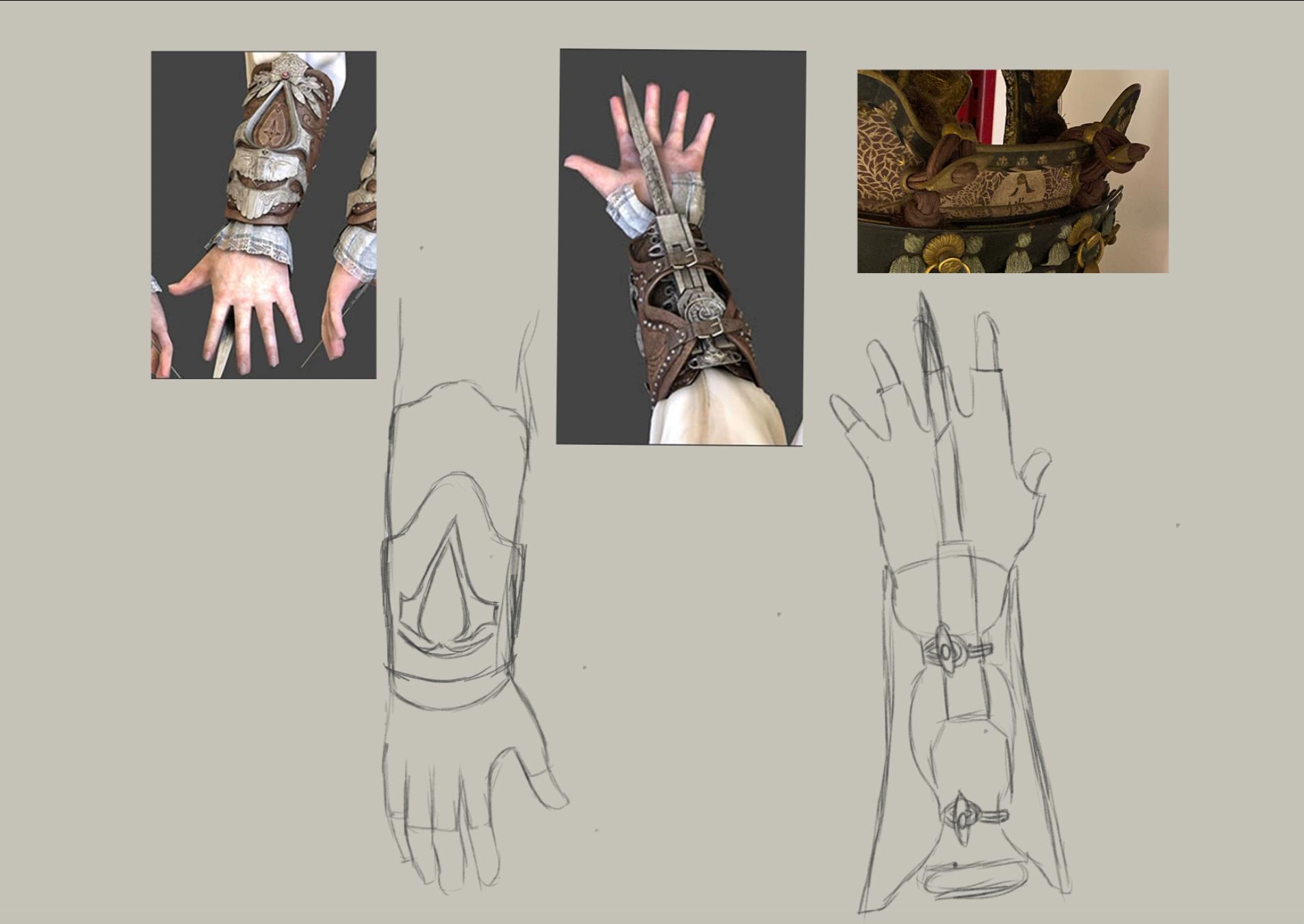 I decided to take inspiration from the hidden blade design in Assassin's Creed 2 as this is set in 1476 - 1499 so relatively close to my chosen time period.