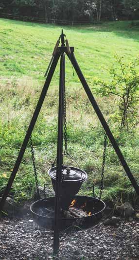 hanging larger pieces of meat over the fire for slow cooking and smoky flavor, and cast-iron pots are used for stews and slow braises. Grills balanced over large rocks or a clean slate slab can be used for cooking Spanish a la plancha style – perfect for searing fish seasoned with foraged herbs and lemon slices. Coals are great for roasting root vegetables like whole carrots, onions, leeks, potatoes, squash, and pumpkin. Brush off the ashes and enjoy full-flavored potatoes, or try wrapping them in foil with herbs, garlic, butter, and spices. Cooking outside over an open fire on an autumn day is soulful and the food tastes earthy and full of flavor. Mankind has been gathering friends and family around a fire since the start of time. Where would we be without fire?