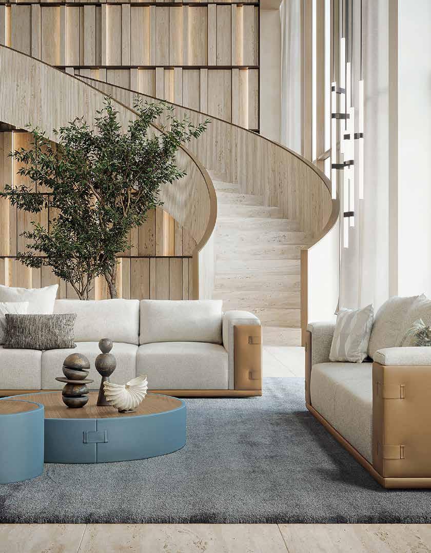 A double grand staircase is not only a striking visual statement, but it also facilitates traffic flow, separates living areas and can be customized with various materials, styles and finishes.