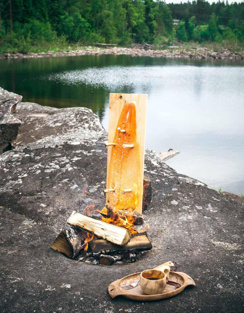 In the Numedal Valley, Norway, plank salmon is prepared over an open fire by an ancient Viking method, using only what nature provides.