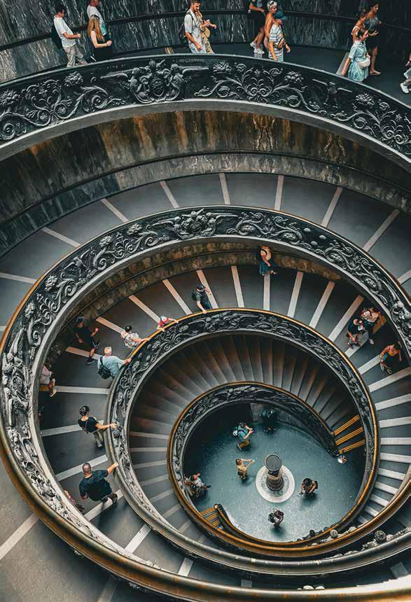 Spiral staircases offer a graceful, twisting form, creating a sense of movement and dramatic visual interest. Elegant and space-efficient, they have a central point around which all steps revolve in an upward spiral. They work well in spaces that are limited, such as an urban condominium.