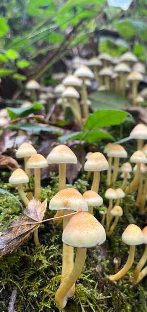 A mushroom’s anatomy consists of the top cap, represented in different structures and shapes, supported by a stem. What you see on the ground is the fruit – the tip of the iceberg. Underneath the cap, the mushroom has gills that hold spores for reproduction. Connected to the stem base is a large network of filaments (hyphae), which form a vast network called mycelium, the vegetative part of the root system that branches out underground. Mycelium creates new fruiting bodies when conditions are mostly dark and moist, with the moderate temperatures of spring and fall.