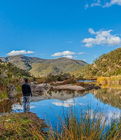 A spot within the Kosciuszko National Park that is worth its own mention is the Yarrangobilly Caves area, most notably the 20m-long, 2.5m-deep thermal pool fed by a natural spring. The main pool here is heated to 27ºC all year round and overflows into a children’s wading area, so the whole family can enjoy a swim any time of year. This natural swimming spot is surrounded by picturesque mountains and lush bushland – the perfect location to spot local wildlife, including lyrebirds, blue wrens, crimson rosellas, king parrots, or some platypus if you’re around at dawn or dusk. There’s also a family-friendly 3km walking loop that travels along the crystal-clear river – it’s a must if you come here. For a little extra adventure, you can also buy a ticket for a self-guided tour of the South Glory Cave.