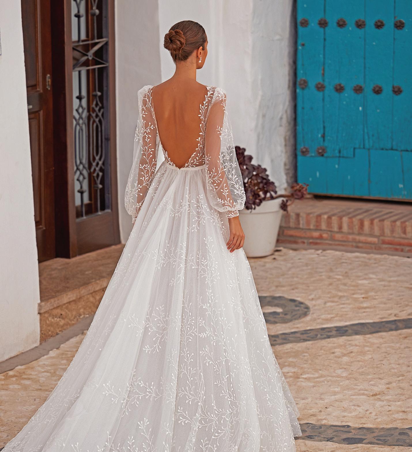 Julie has taken a bit more of a restrained approach to her glamorous Mimosa gowns. Utilizing simple clean architectural lines. From Jumpsuits to sleek column dresses, every intricate detail is executed with precision and passion making this collection truly special. Effortlessly chic, this collection provides simple looks that can be versatility styled to beautifully complement any type of wedding setting. Swan Lake is all elegance & romance, with plunging necklines and dreamlike tulle. Stylistically speaking, brides can look forward to slinky slip dresses incorporating details such as jaw-dropping slits to striking cowl back details. The iconic pieces all hold a timeless style infused with the sensibility that ‘less is more’.