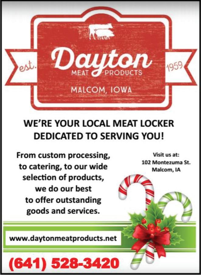 903 Main St. 641-236-1008 Happy Holidays from the staff of Bill’s Jewelry Concrete Steps 4-6 ft. wide • 1-6 steps Concrete Septic Tanks 500 to 2000 gallons WE ALSO MAKE: • Parking Curbs/Barriers • Bird Baths • Stepping Stones • Monument Pads 205 W. Grace St., Toledo, IA 641-484-TANK (8265) • Lawn Trim We supply Infiltrator brand leach field and EZflow products. Tassel Ridge Wine Simply Extraordinary®