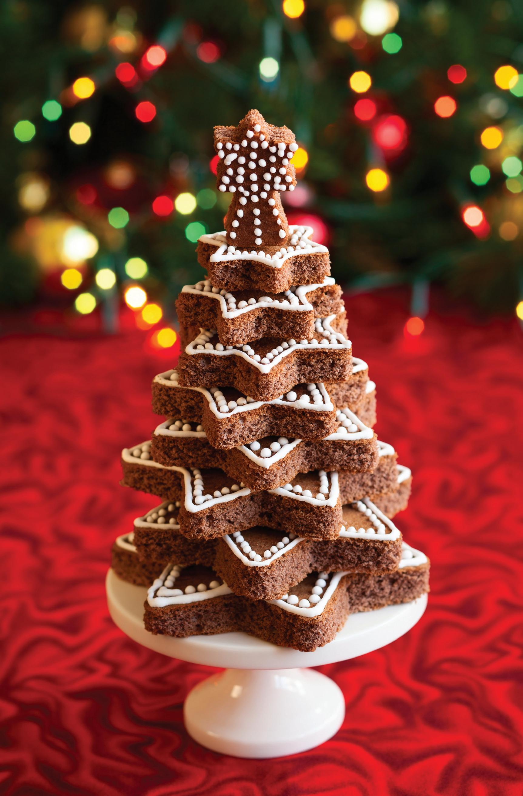 On a flat cake plate, starting with the largest, layer the star cakes, alternating the points to form a tree.