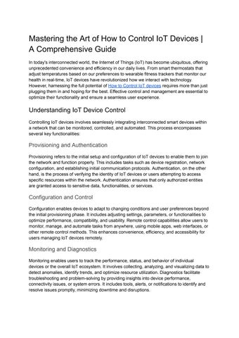 In today's interconnected world, the Internet of Things (IoT) has become ubiquitous, offering unprecedented convenience and efficiency in our daily lives From smart thermostats that adjust temperatures based on our preferences to wearable fitness trackers that monitor our health in real-time, IoT devices have revolutionized how we interact with technology However, harnessing the full potential of How to Control IoT devices requires more than just plugging them in and hoping for the best Effective control and management are essential to optimize their functionality and ensure a seamless user experience