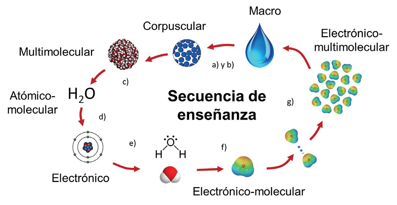 «[...] la estructura conceptual de la química obliga a arti cular los contenidos de los currículos de química desde la doble perspectiva de la conceptualización macroscópica y submicroscópica, y su enseñanza y aprendizaje requie re hacer uso de formas representacionales que implican el uso de un lenguaje icónico, gráfico y simbólico.»