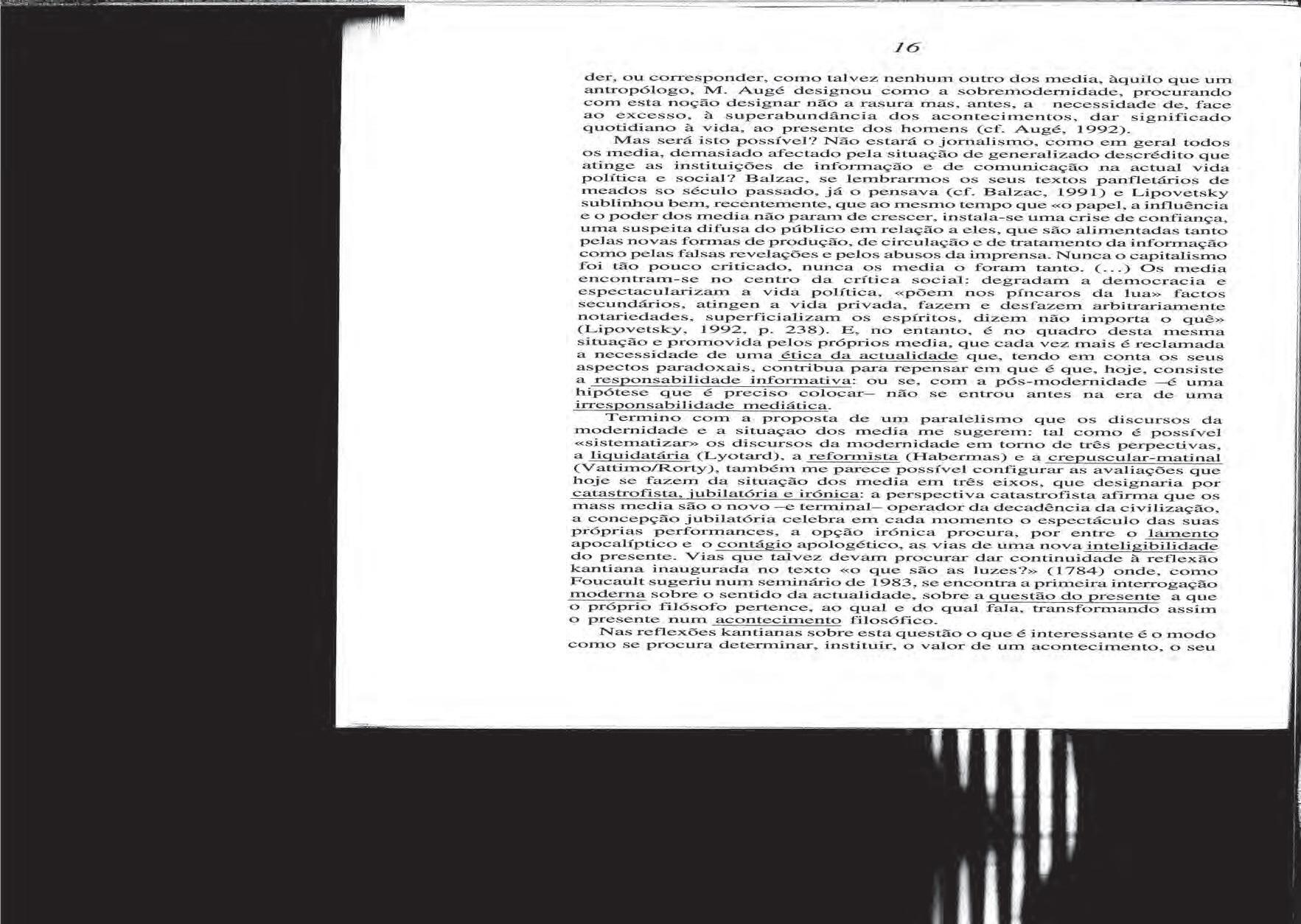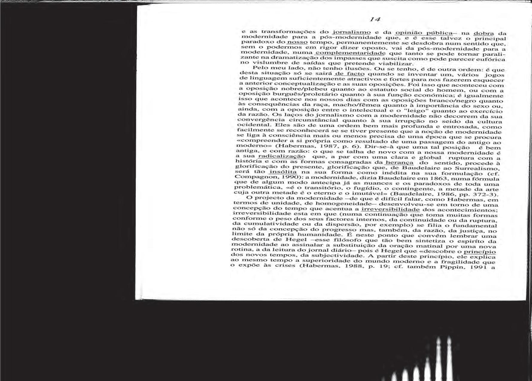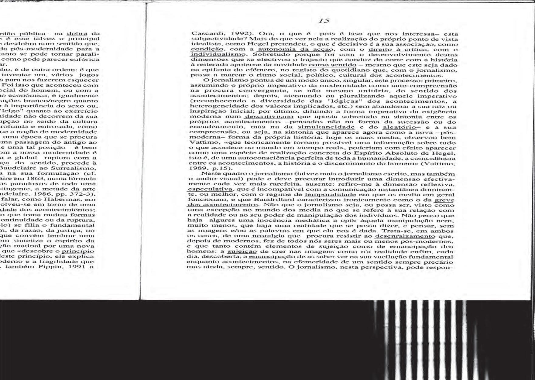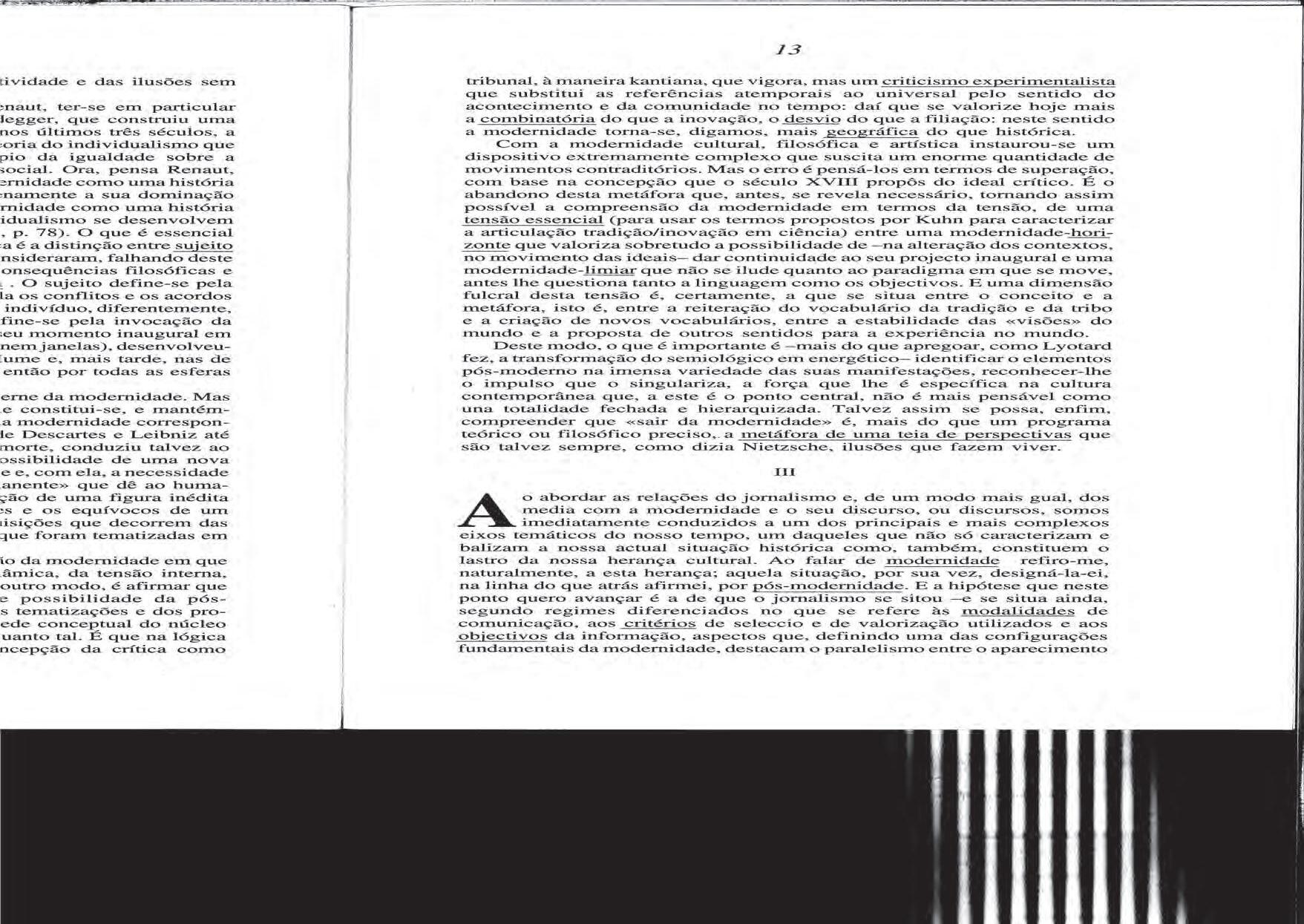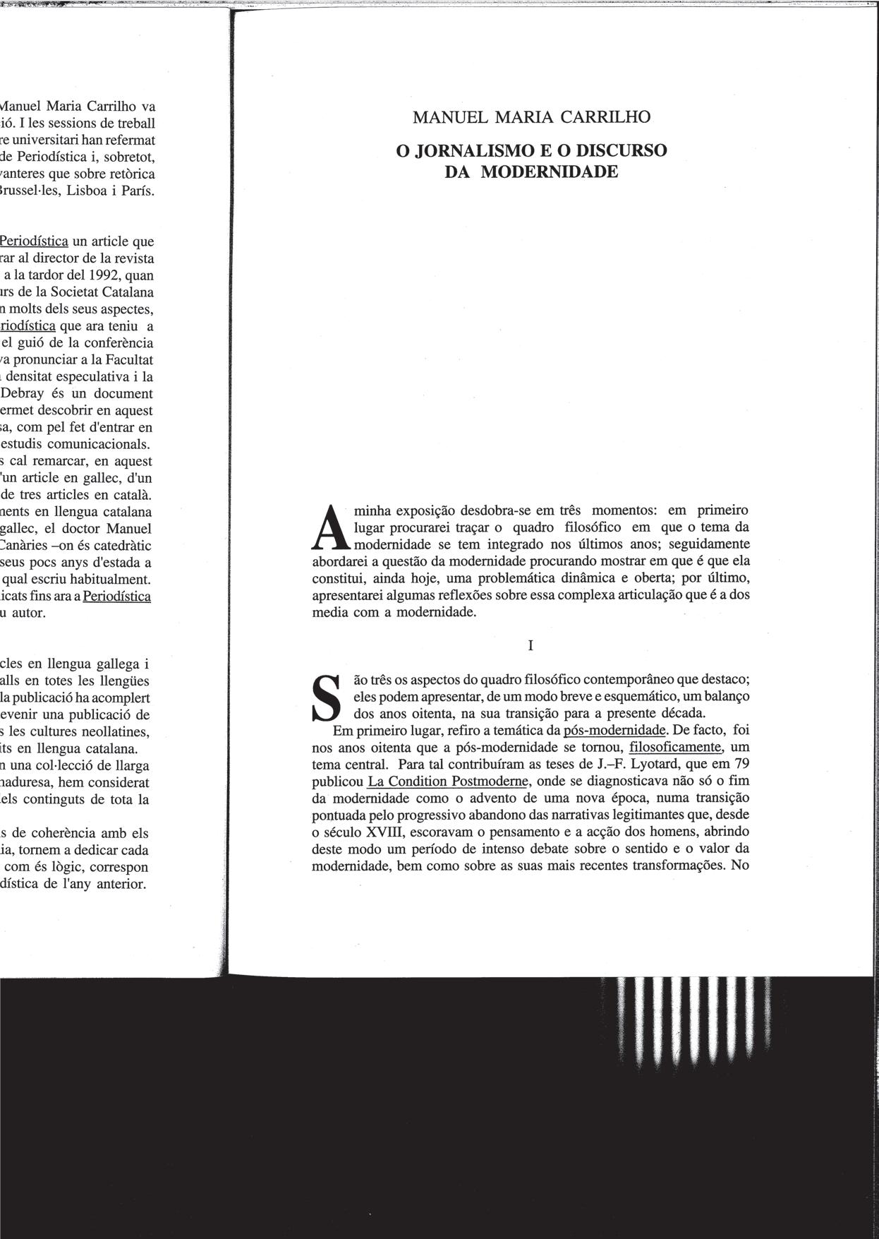 Manuel Maria carrilho, «O Jornalismo e o discurso da modernidade», 1994.