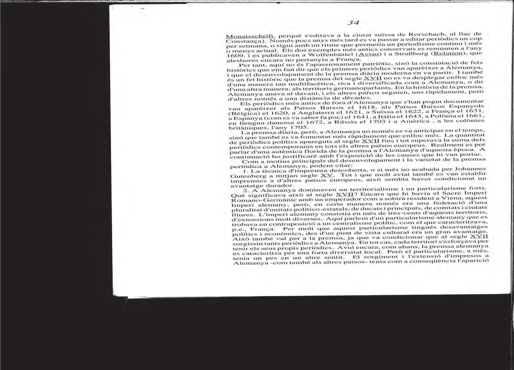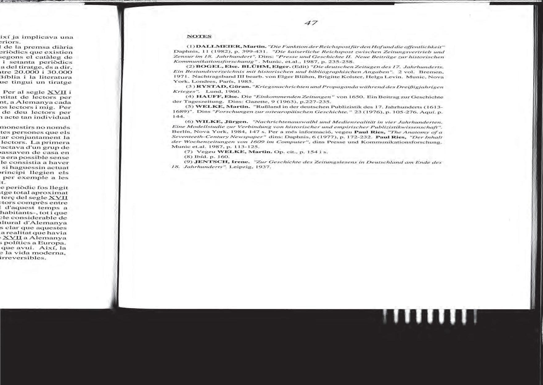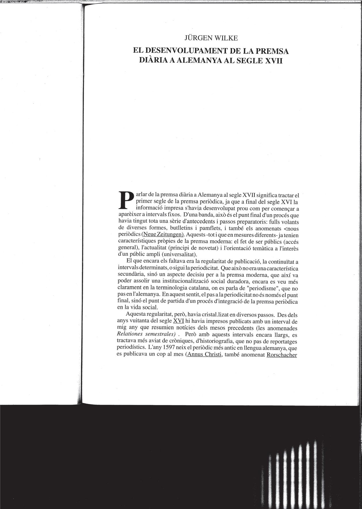 Jürgen Wilke, «El desenvolupament de la premsa diària a Alemanya al segle xvii», 1992.