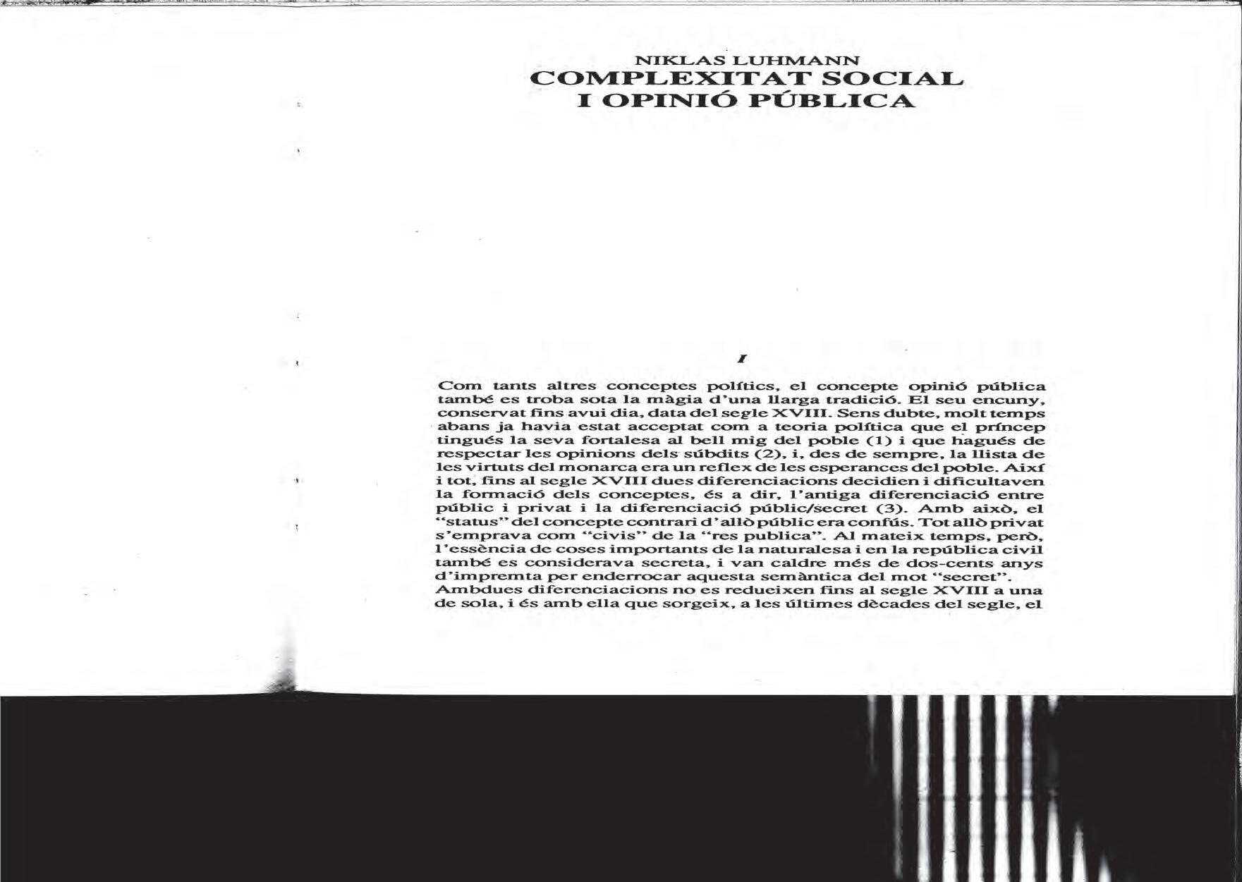Niklas luhmann, «Complexitat social i opinió pública», 1989.