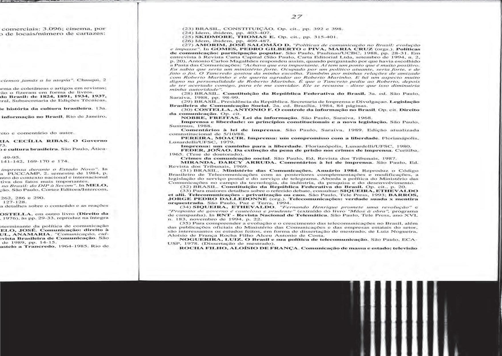 Margarida M. krohling kunsch, «Políticas e sistemas de comunicaçao no Brasil: retrospectiva e anàlisi contemporânea», 1995.