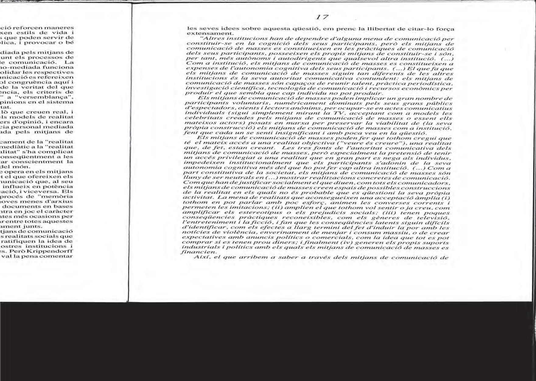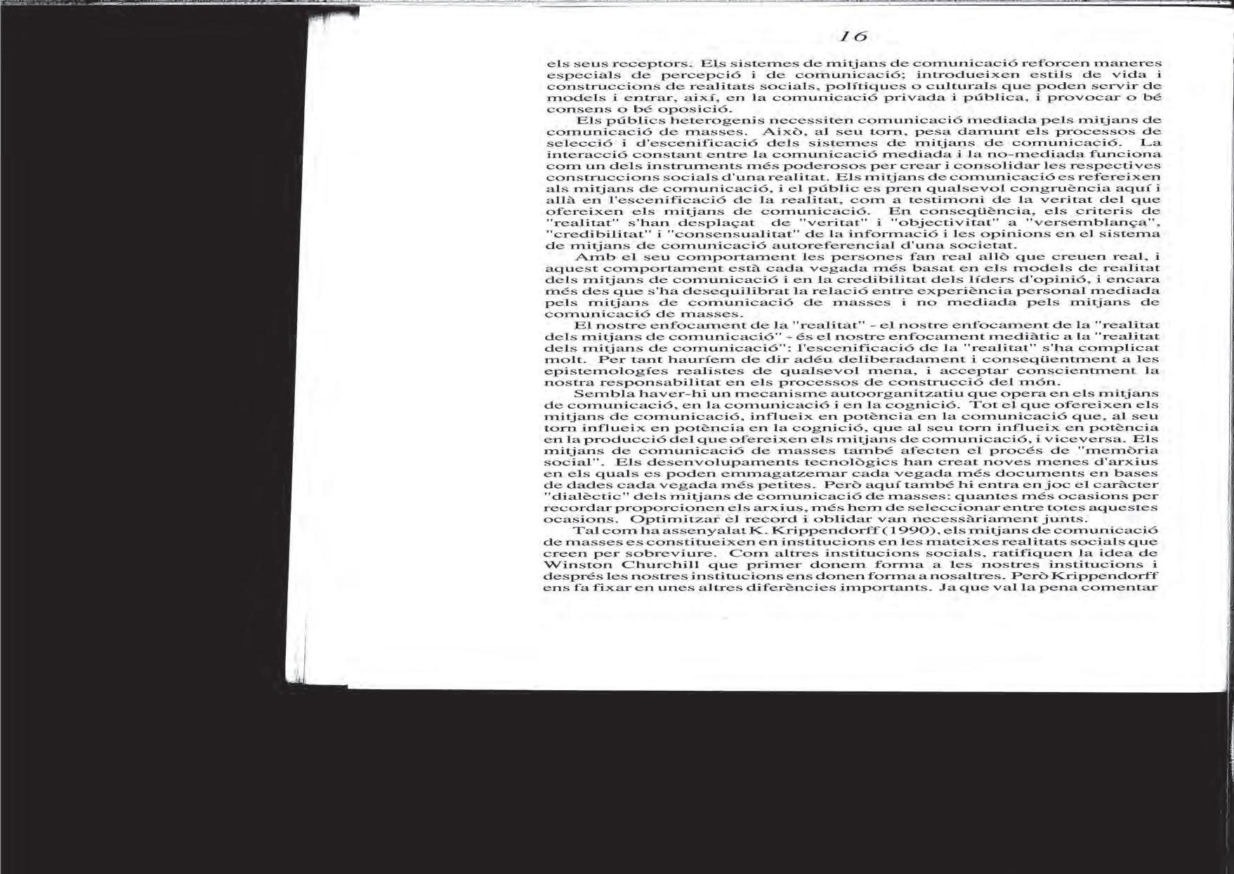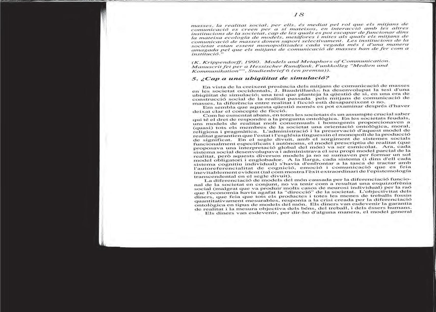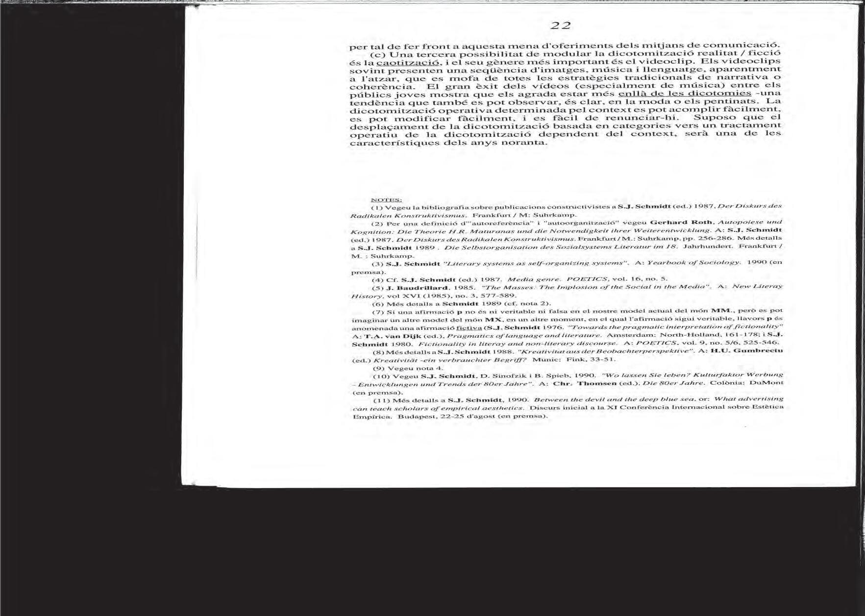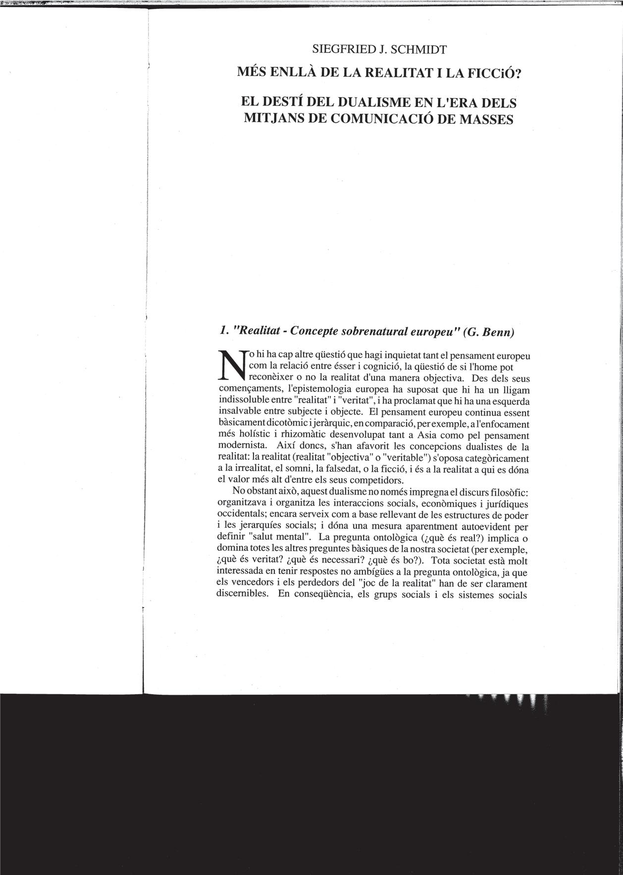Siegfred J. schmiDt, «Més enllà de la realitat i la ficció? El destí del dualisme en l’era dels mitjans de comunicació de masses», 1991.